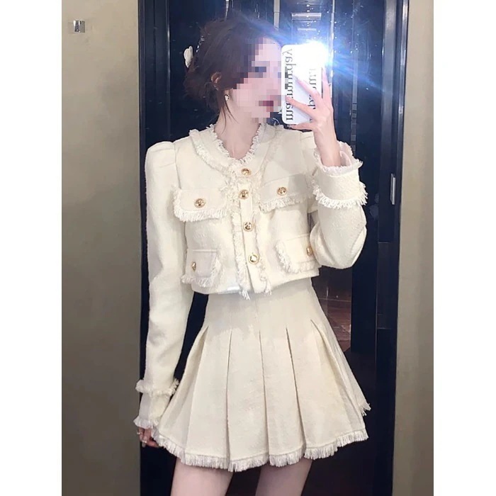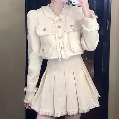 セットアップ 韓国ファッション 涼しく楽ちんセット セットアップスカート2点セット秋冬新作フレンチテイストお嬢様風ショートジャケットスカート2点セット