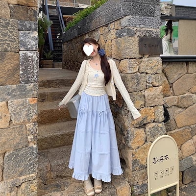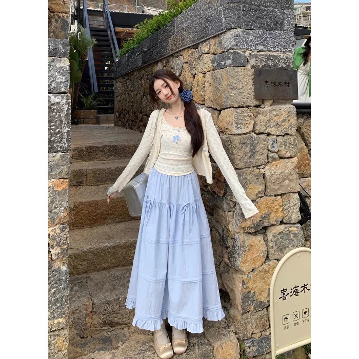 セットアップ 韓国ファッション 涼しく楽ちんセット 春秋新作コーディネートストラップカーディガン 純粋な花柄パフスカート3点セット