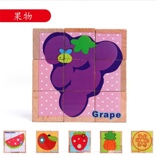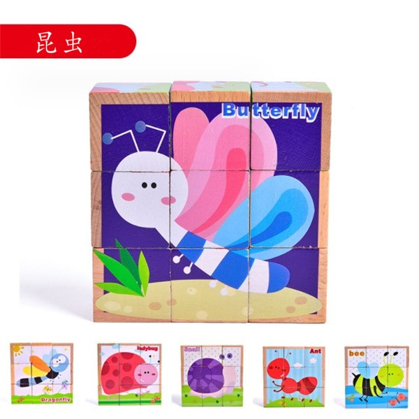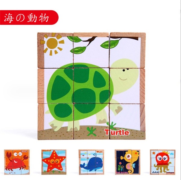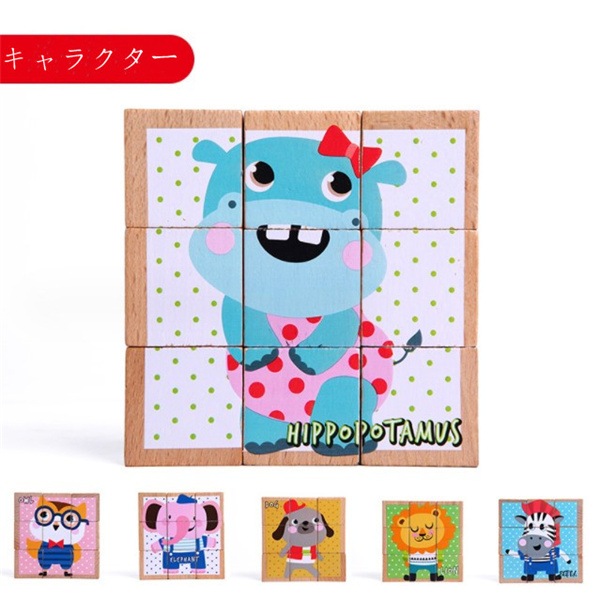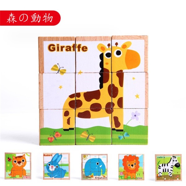 キューブパズル 3D立体パズル 木製 積み木 アニマル 9コマ 子供向け 知育玩具 動物 男の子 女の子 教具 形合わせ 木のおもちゃ 誕生日プレゼント