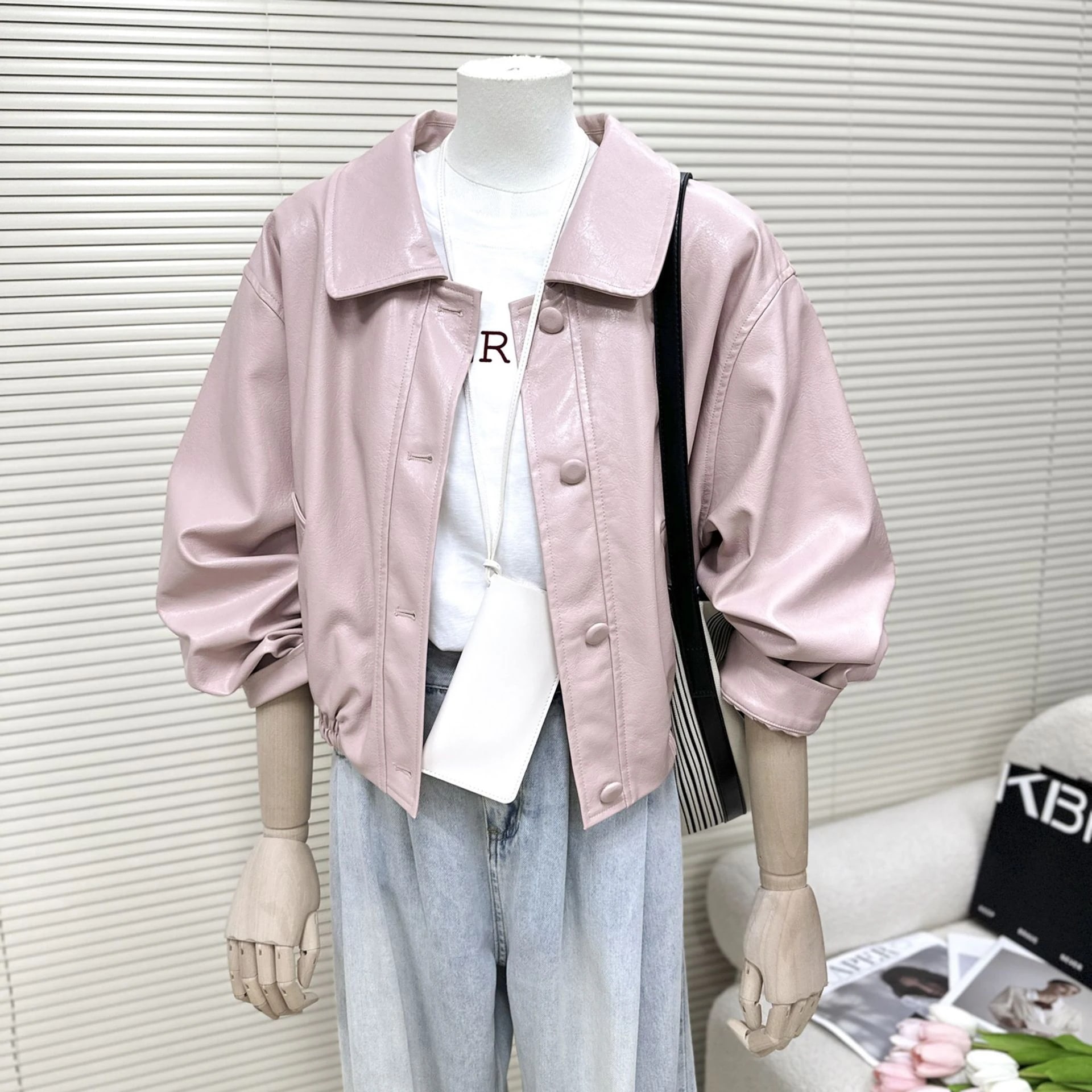 超かわいいピンクのジャケット レザージャケット 2025年春新作 ゆったりショート丈 トップス 小柄な方におすすめ