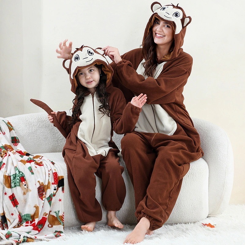 着ぐるみパジャマ フリースワンピーススリーブ ホーム親子装年長児・大人用リブロンスーツパフォーマンス衣装 柔らかく保温性に優れ居家着用も舞台表演も適応親子で着用できるデザインで愛らしい雰囲気満点
