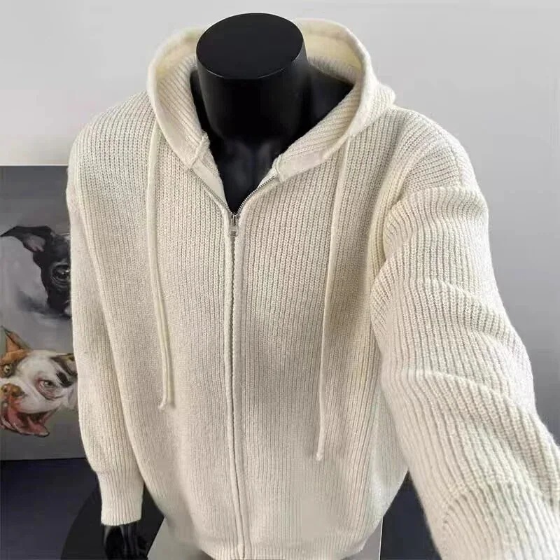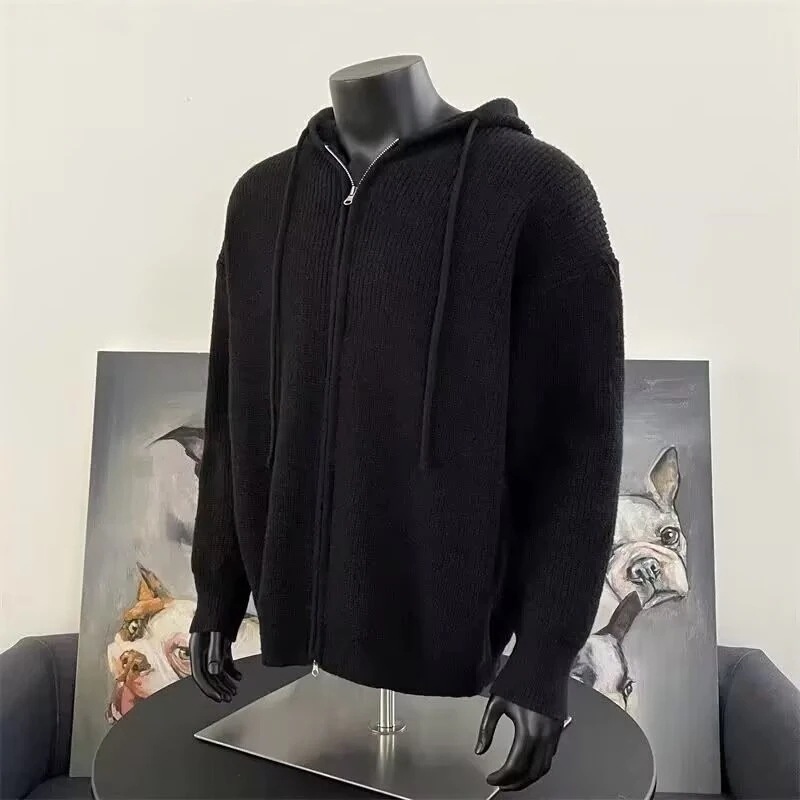 メンズファッション ニットセーター 冬 フード付きジップアップカーディガン 長袖 セーター ゆったり ニット アウター 韓国風
