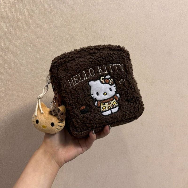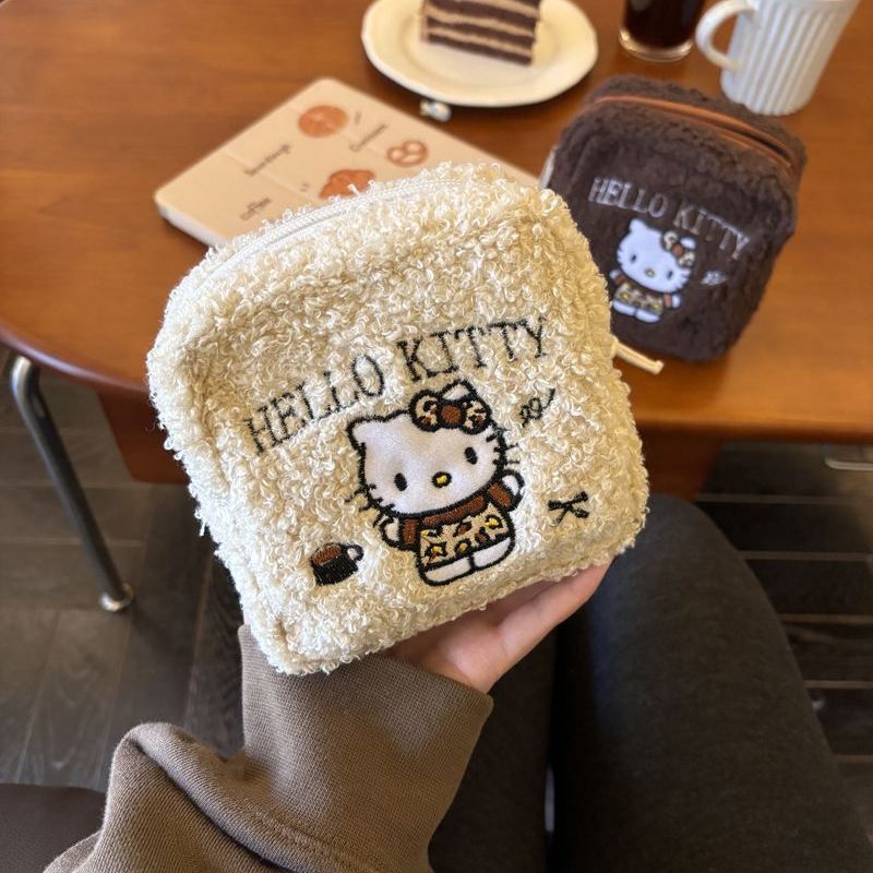 新品レトロモコモコkt猫刺繍ポーチccd収納バッグ携帯型高ルックス手提げポーチおばさんタオルバッグ