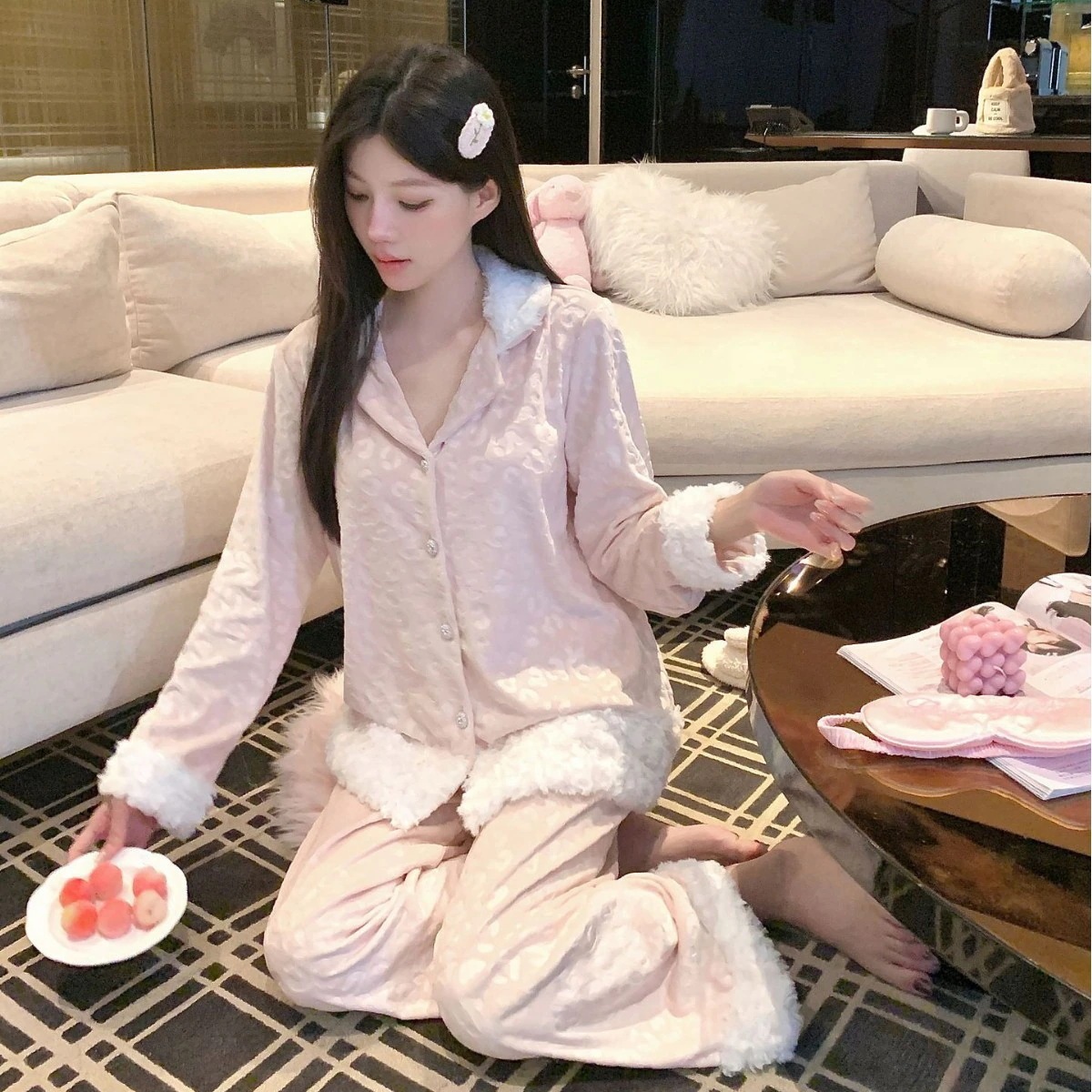 パジャマ女性新作秋冬厚手ホームウェア両面起毛保温ファッションヒョウ柄パジャマふわふわ