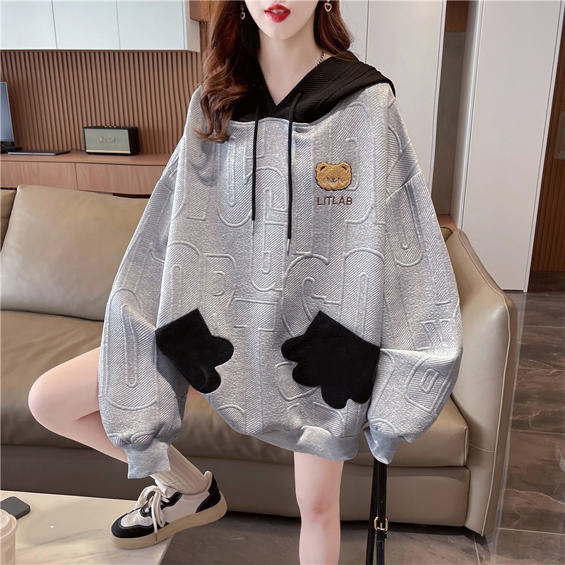 新作登場2025秋の韓国ファッションゆったりデザイン感薄手のワッフルベアーコート パーカー レディース アウター ジップパーカー