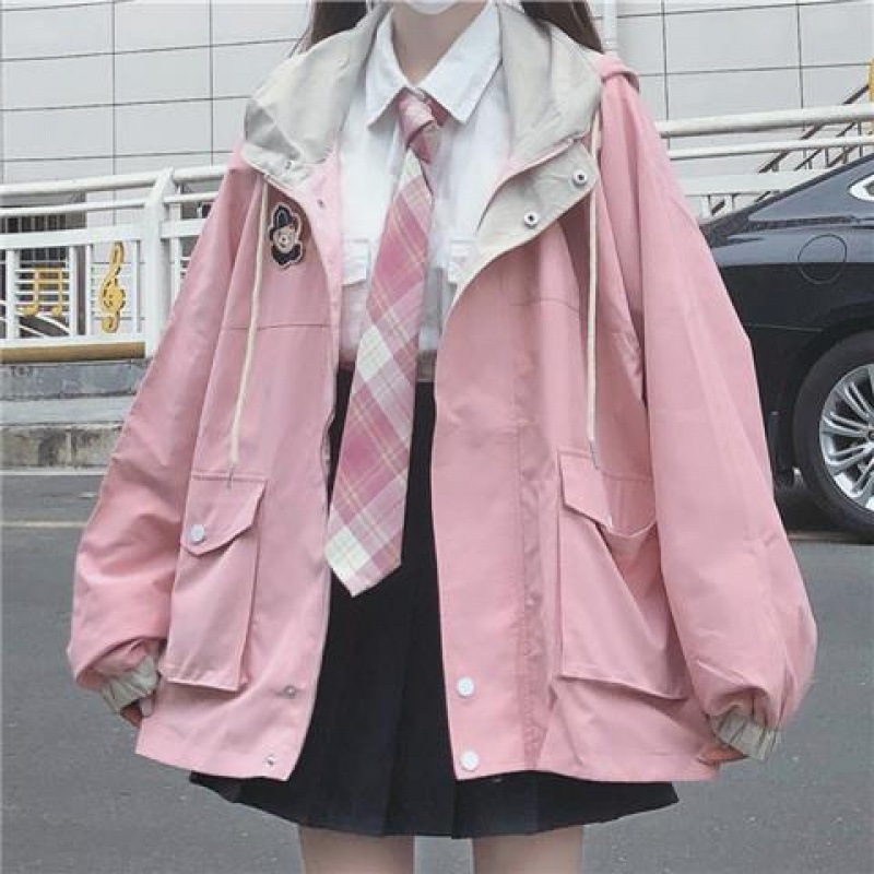レディース秋冬ワークウェアジャケット 10代女の子 春秋 ルーズフィット 日本製 JK かわいい トップス