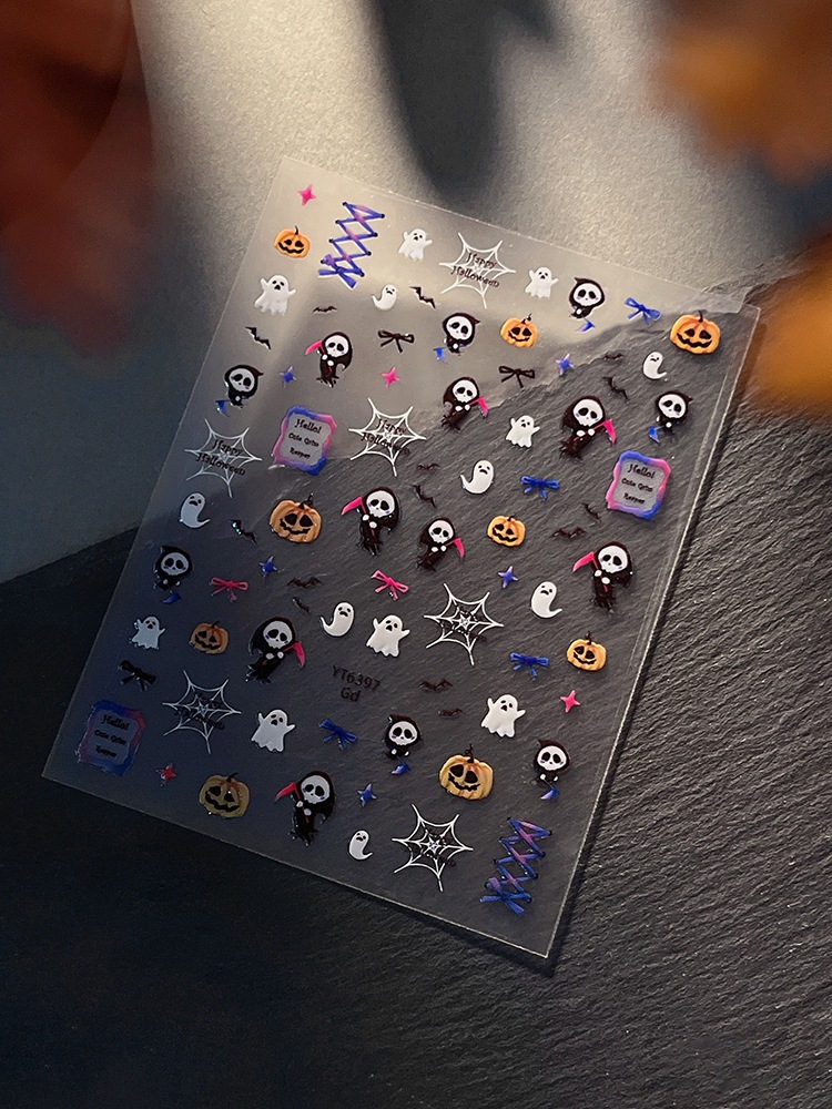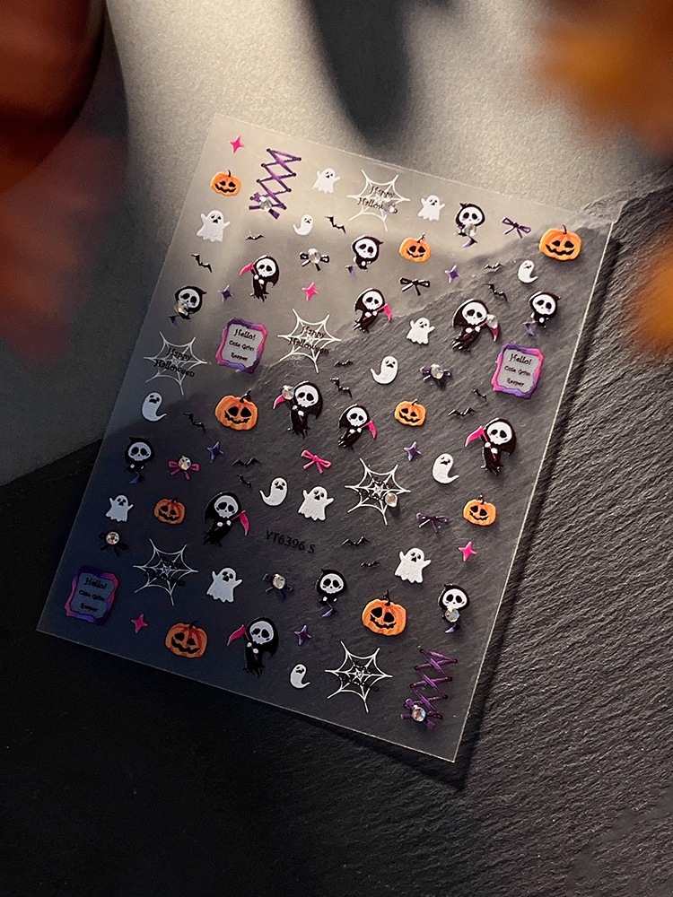 ハロウィン 新入荷 ネイルシール浮き彫りゴーストネイルアートシールダークハロウィンデコレーションシールネイルアート