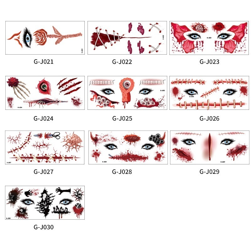 汚れたハロウィンタトゥーステッカーリアルな男女兼用タトゥーパーティー防水耐汗怖い傷のある顔
