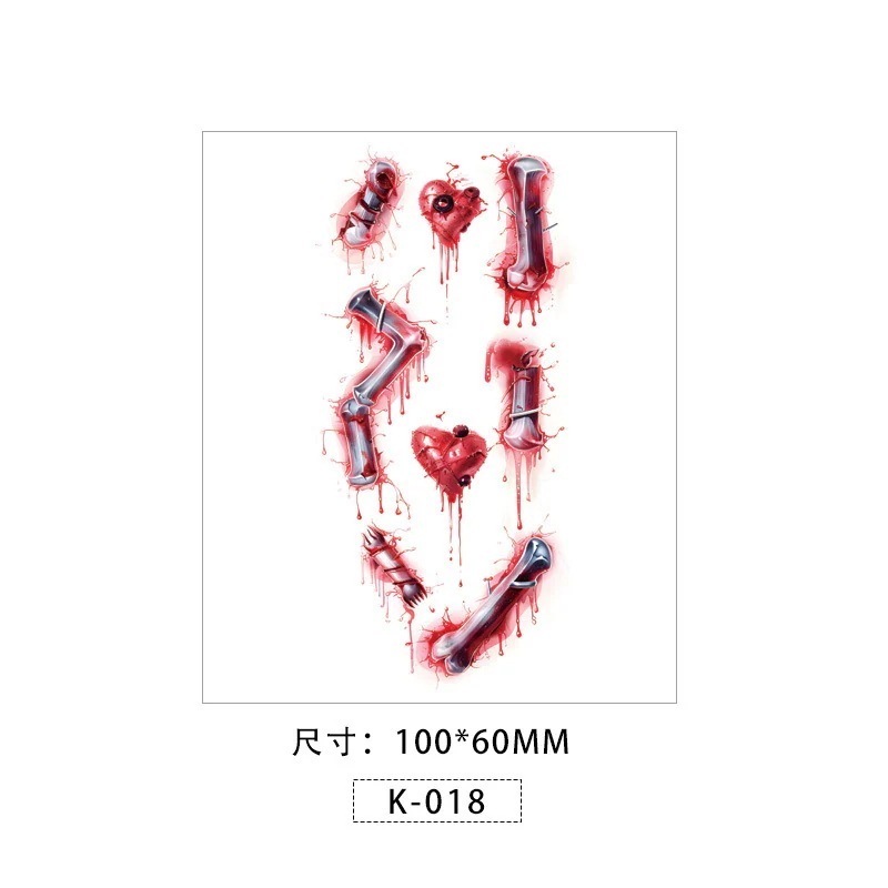 ハロウィンパーティーコスチュームタトゥーピエロの傷跡ステッカー手の骨の傷跡のクイック転写タトゥー
