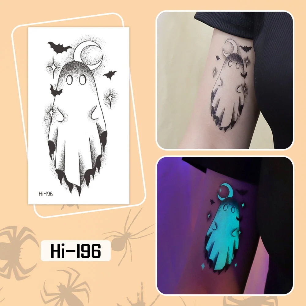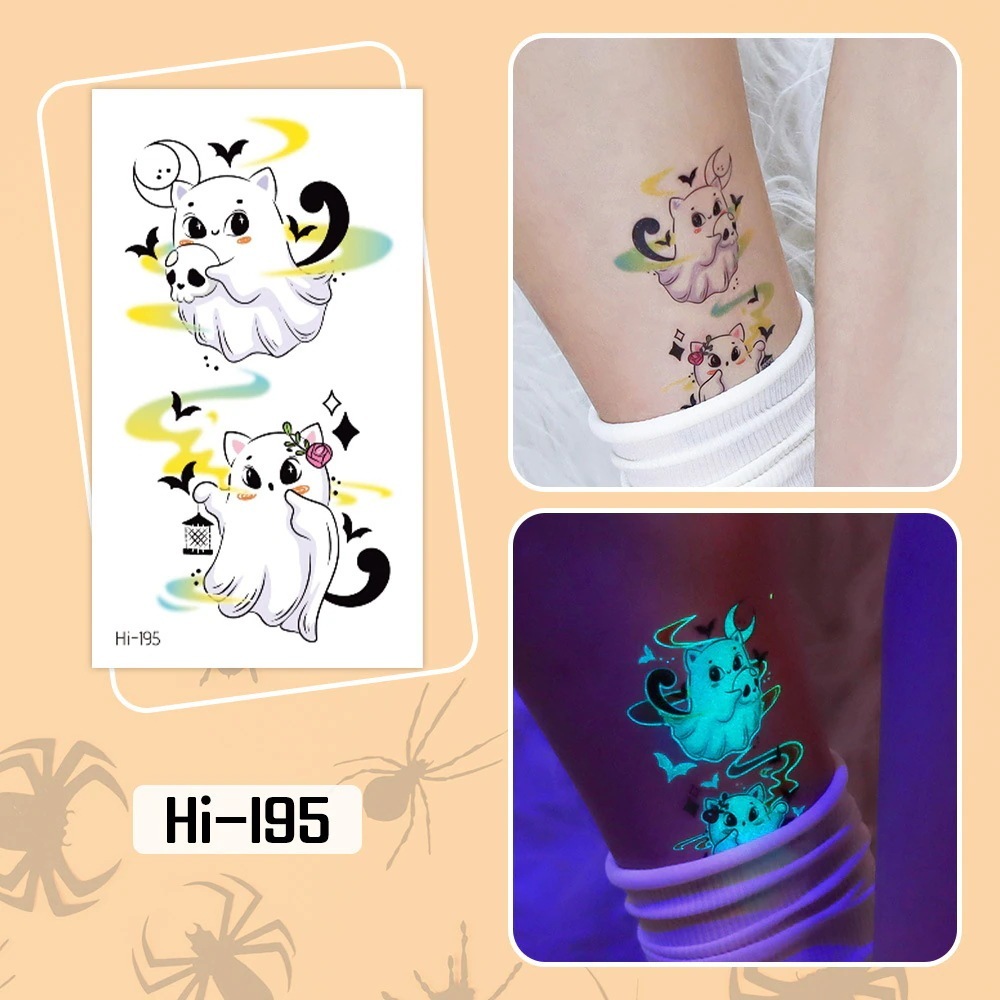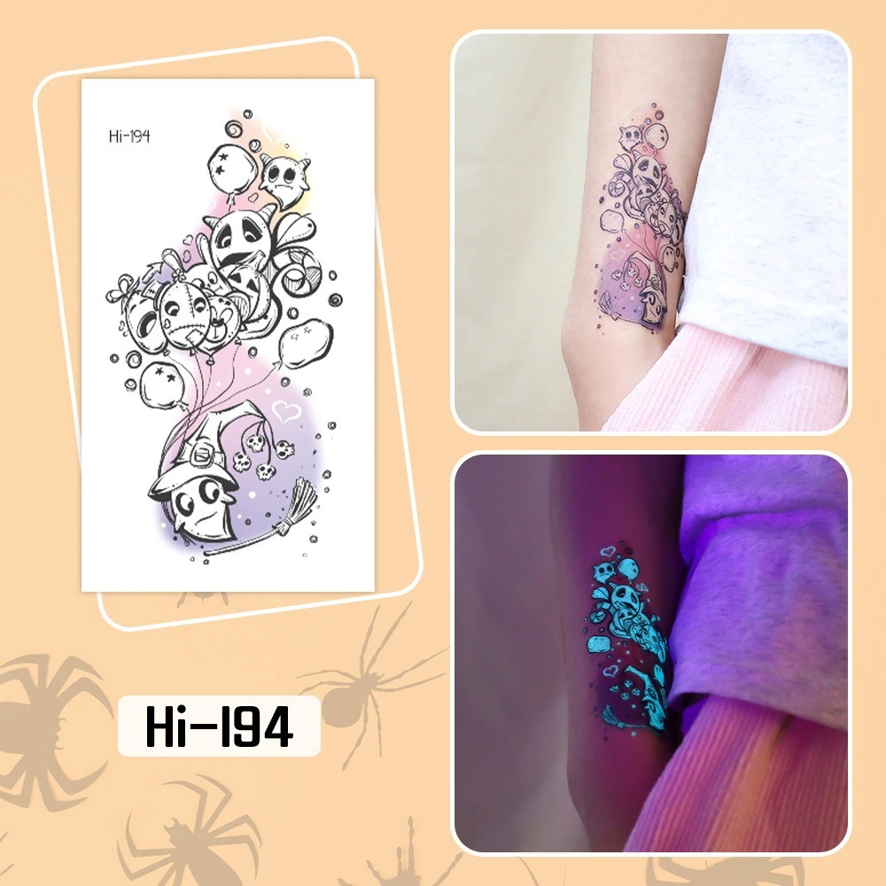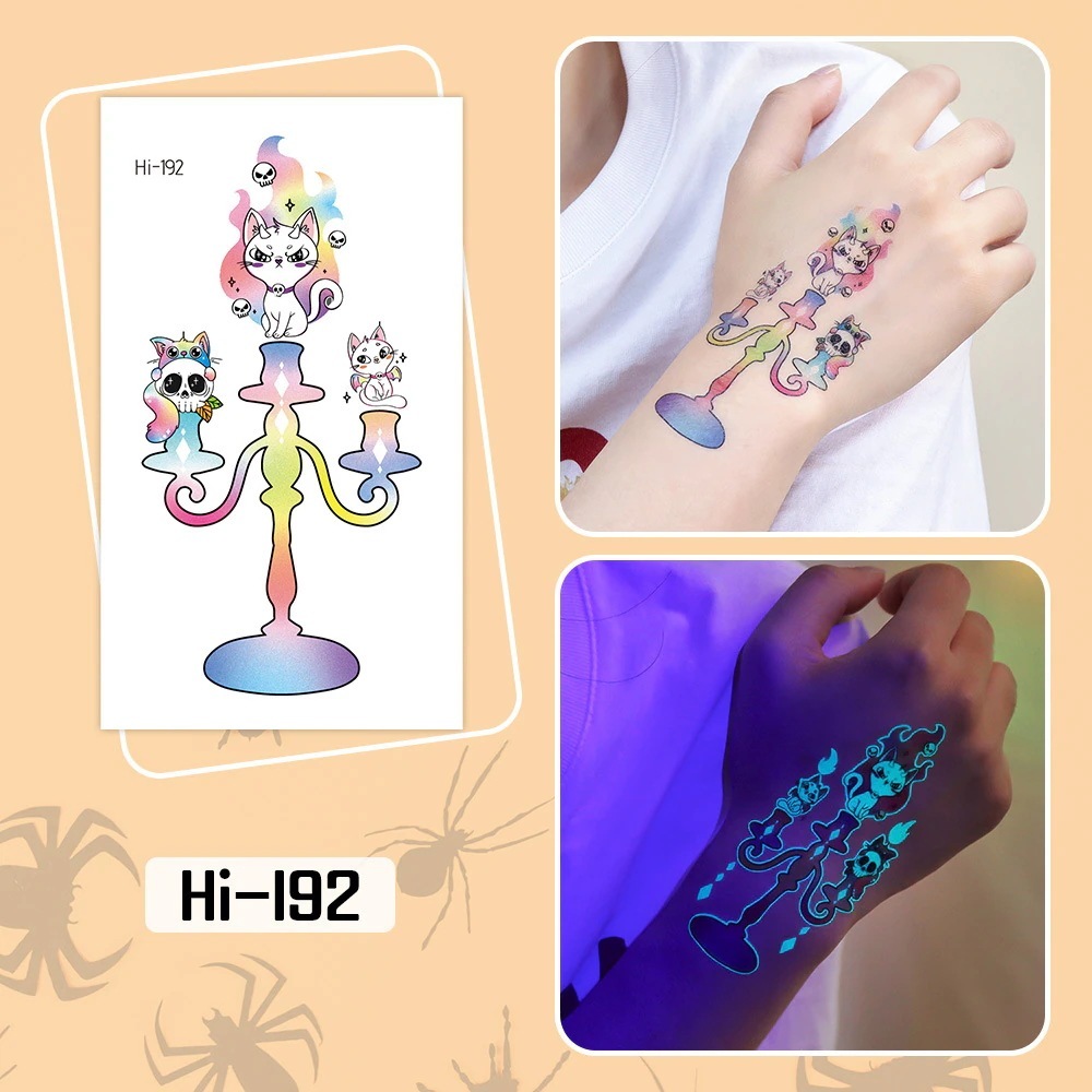 ハロウィン用光るタトゥーステッカー防水長持ちする蛍光グリーンの子供用アニメフェイスタトゥー