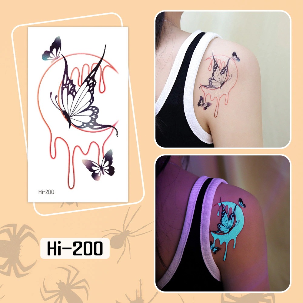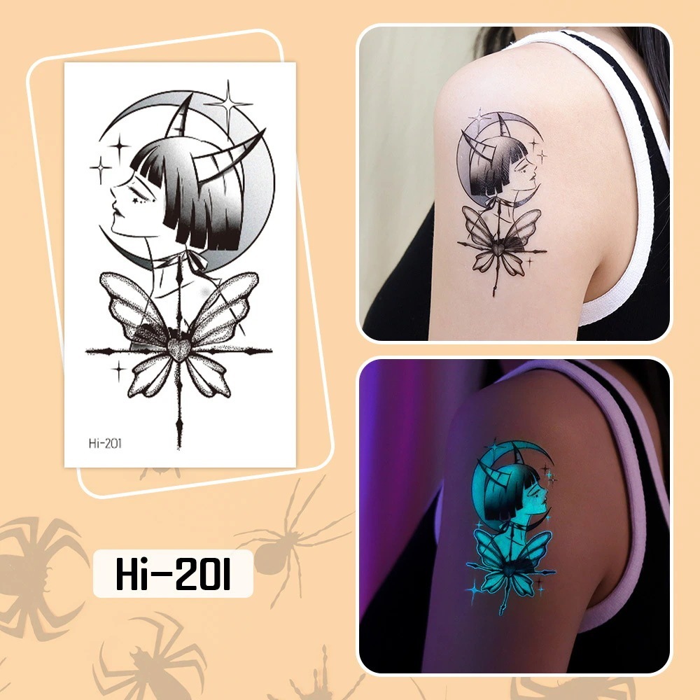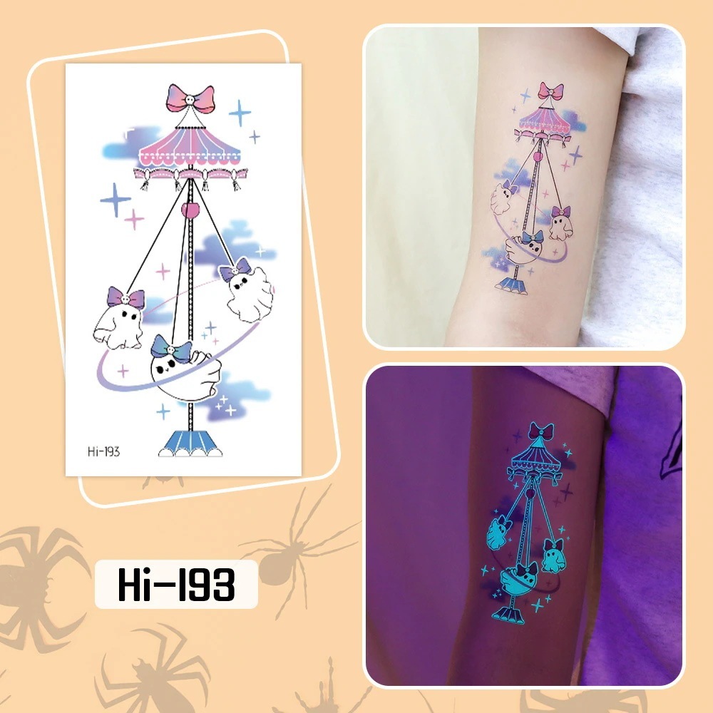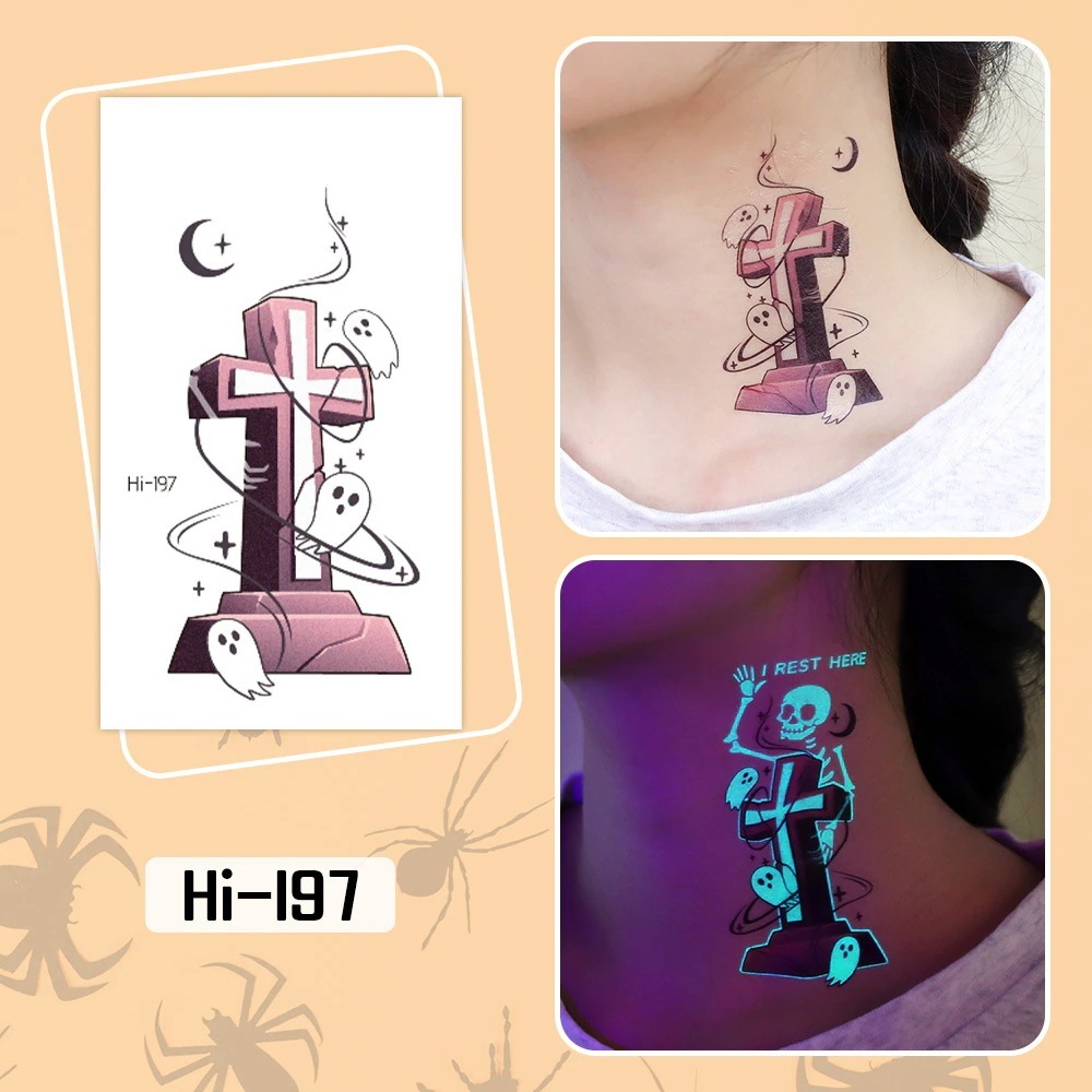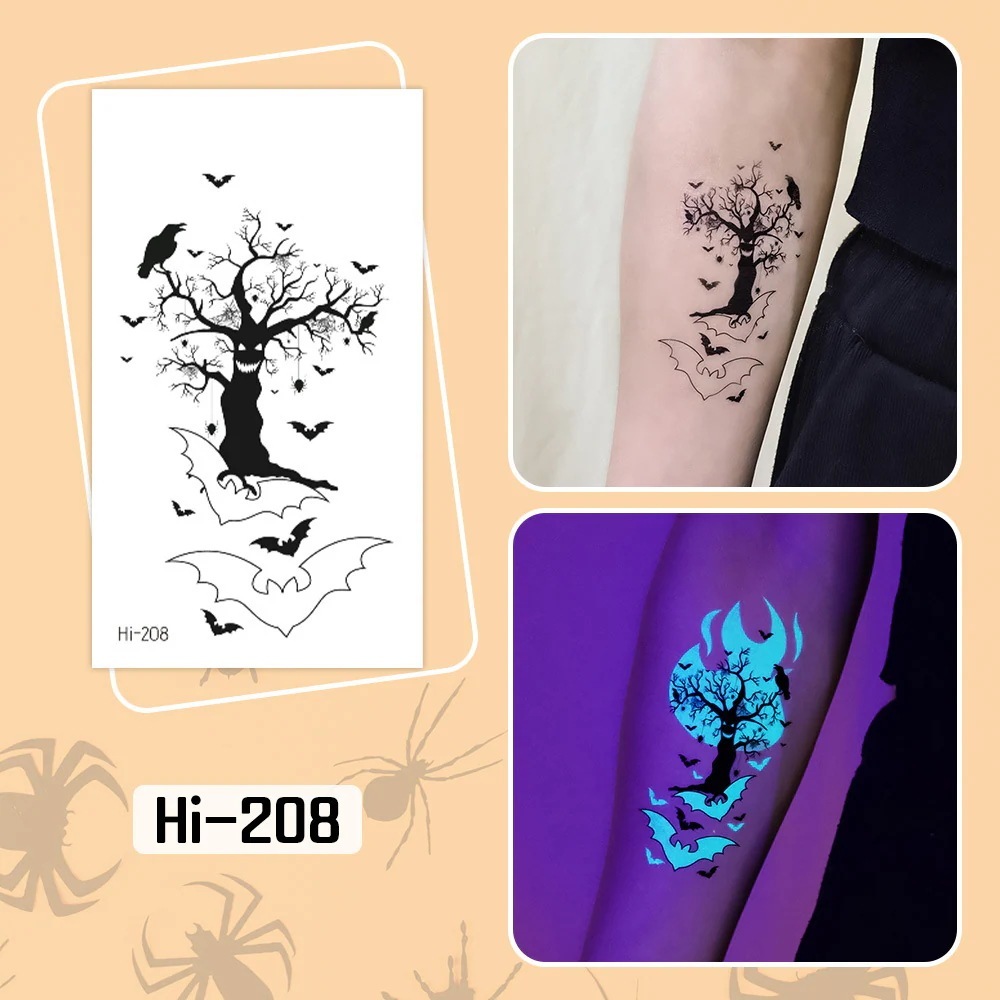 ハロウィン用光るタトゥーステッカー防水長持ちする蛍光グリーンの子供用アニメフェイスタトゥー