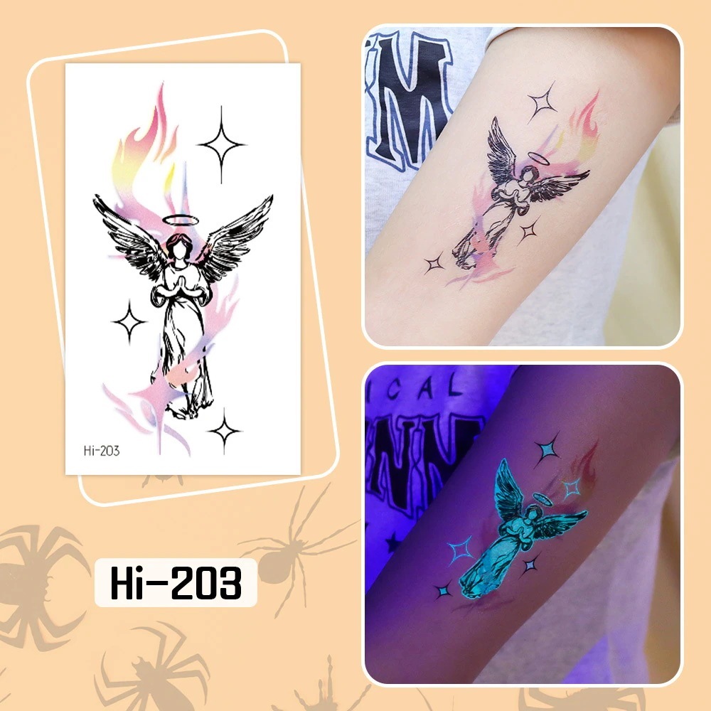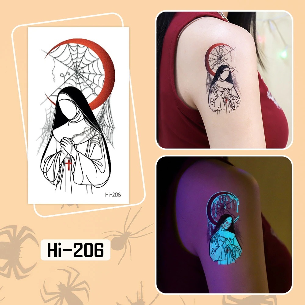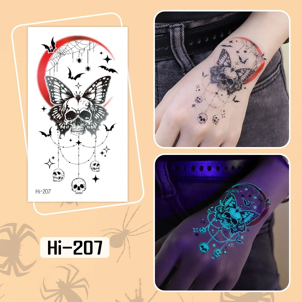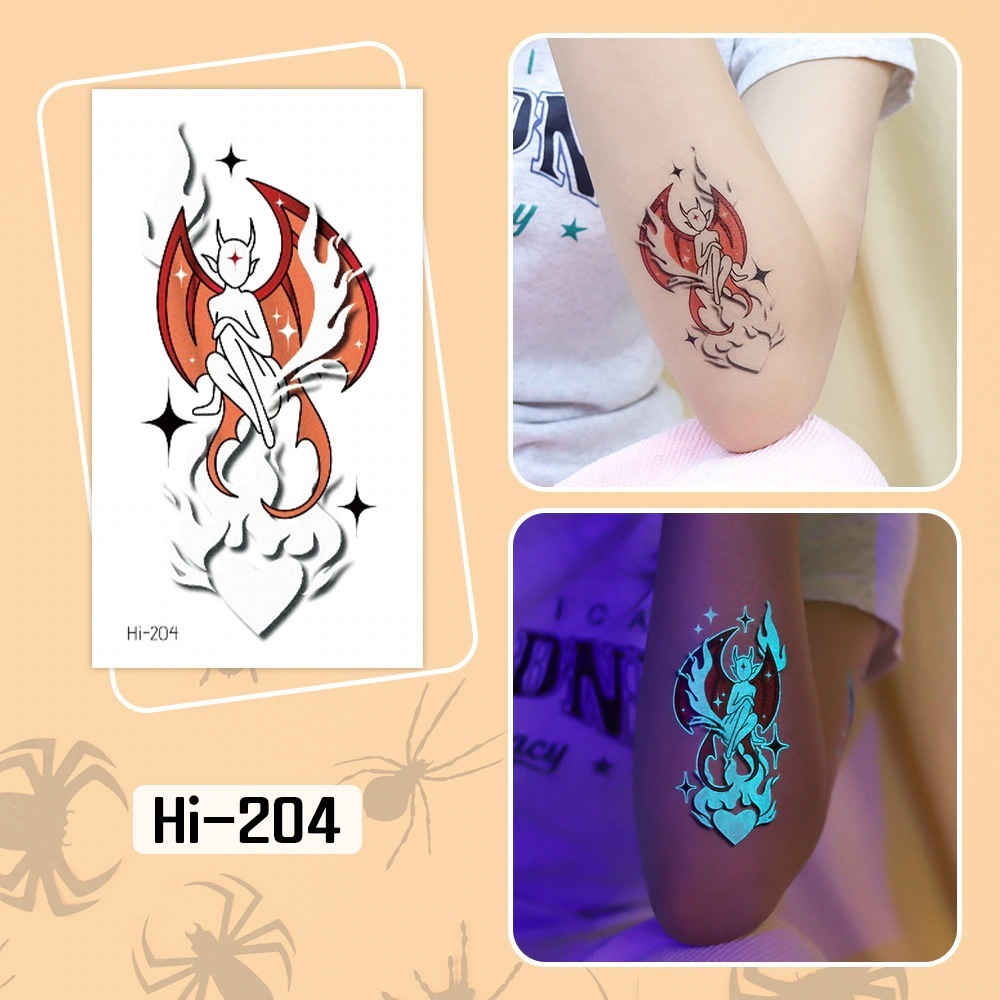 ハロウィン用光るタトゥーステッカー防水長持ちする蛍光グリーンの子供用アニメフェイスタトゥー
