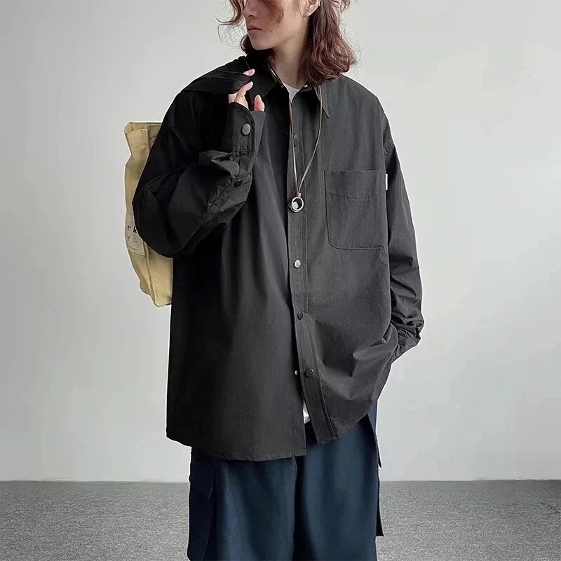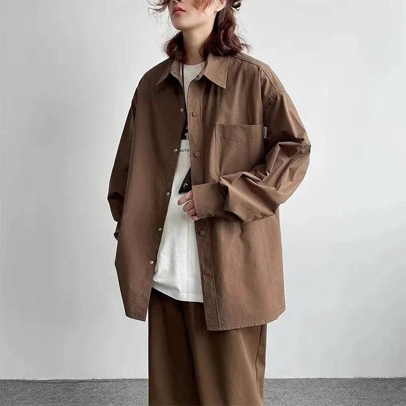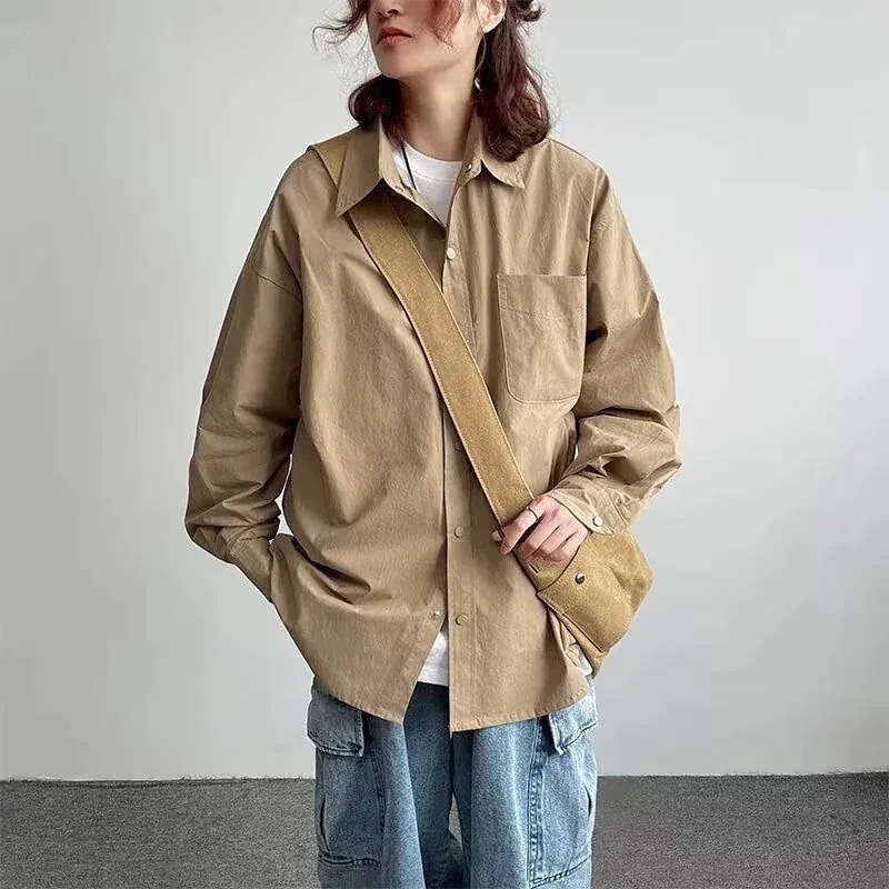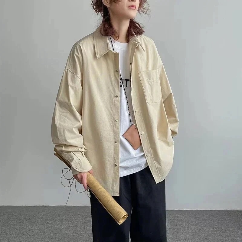 トレンドのレトロシャツ の男性と女性25緩い長袖シャツ シンプルな万能ブラウス