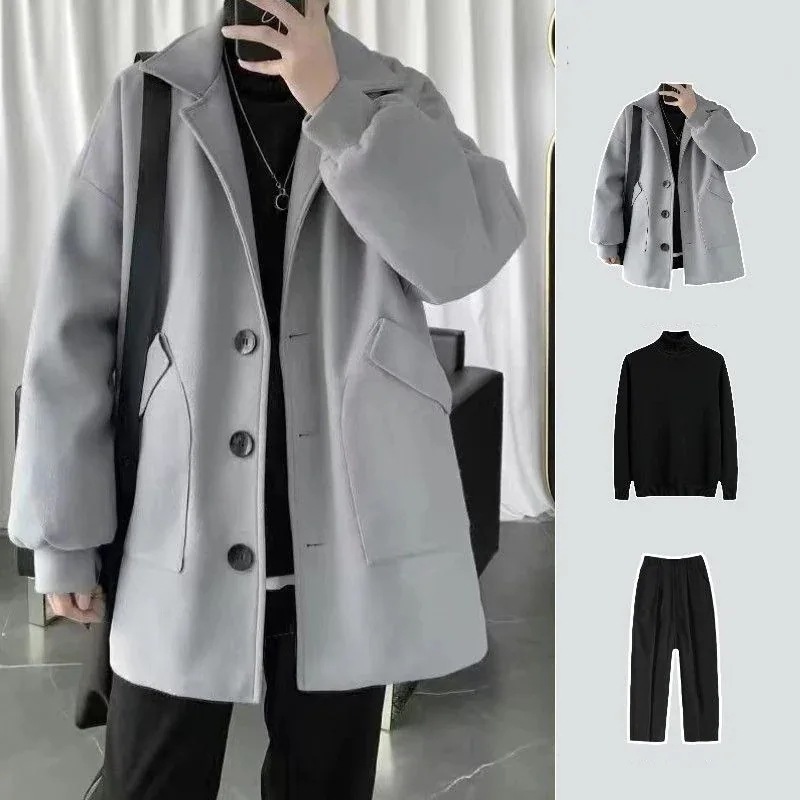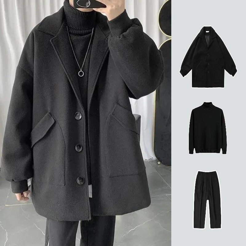 3点セット カジュアル 厚手 ジャケット+セーター+パンツ 韓国ファッション メンズセットアップ