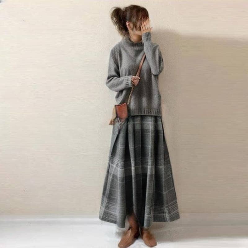 日系25新作タートルネックセーター+ハーフスカートの2点セット