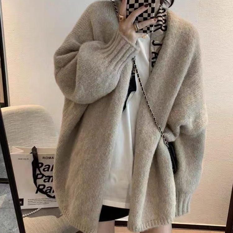 早割SALE服 シンプルミドル丈無地ニットカーディガン 無地 長袖トップスニットシアーシャツ 日韓国ファッション