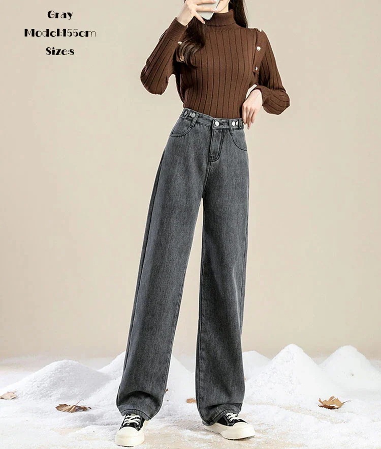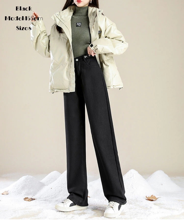 大人気! 裏起毛 デニム デニムパンツ パンツ レディース ストレート 低身長さん 高身長さん 防寒 カジュアル ワイド ボーイフレンドデニム ブラック ゆったり 垢抜け 黒 ブルー ライトブルー