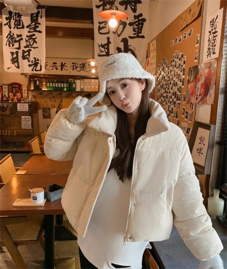 大人気! INSスタイル 秋冬着回し大 リバーシブル襟 コーデュロイ ゆったり着丈 厚手 短アウター ダウンジャケット コート