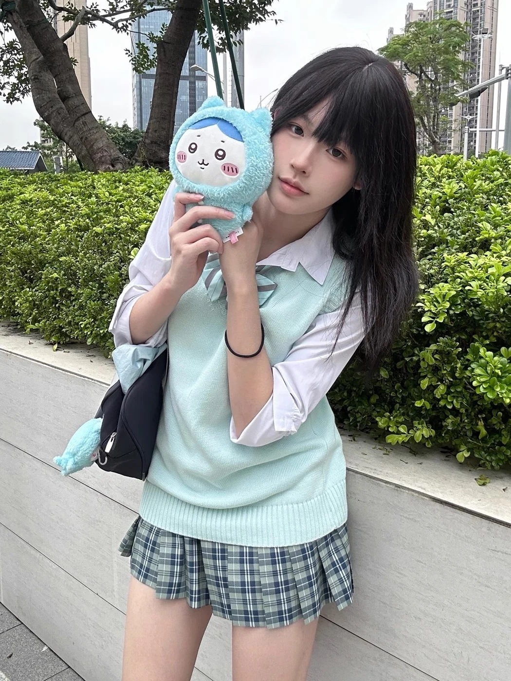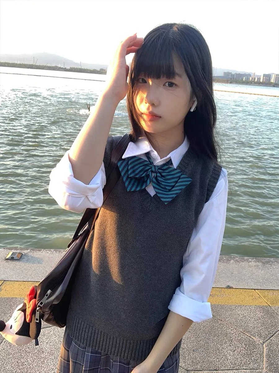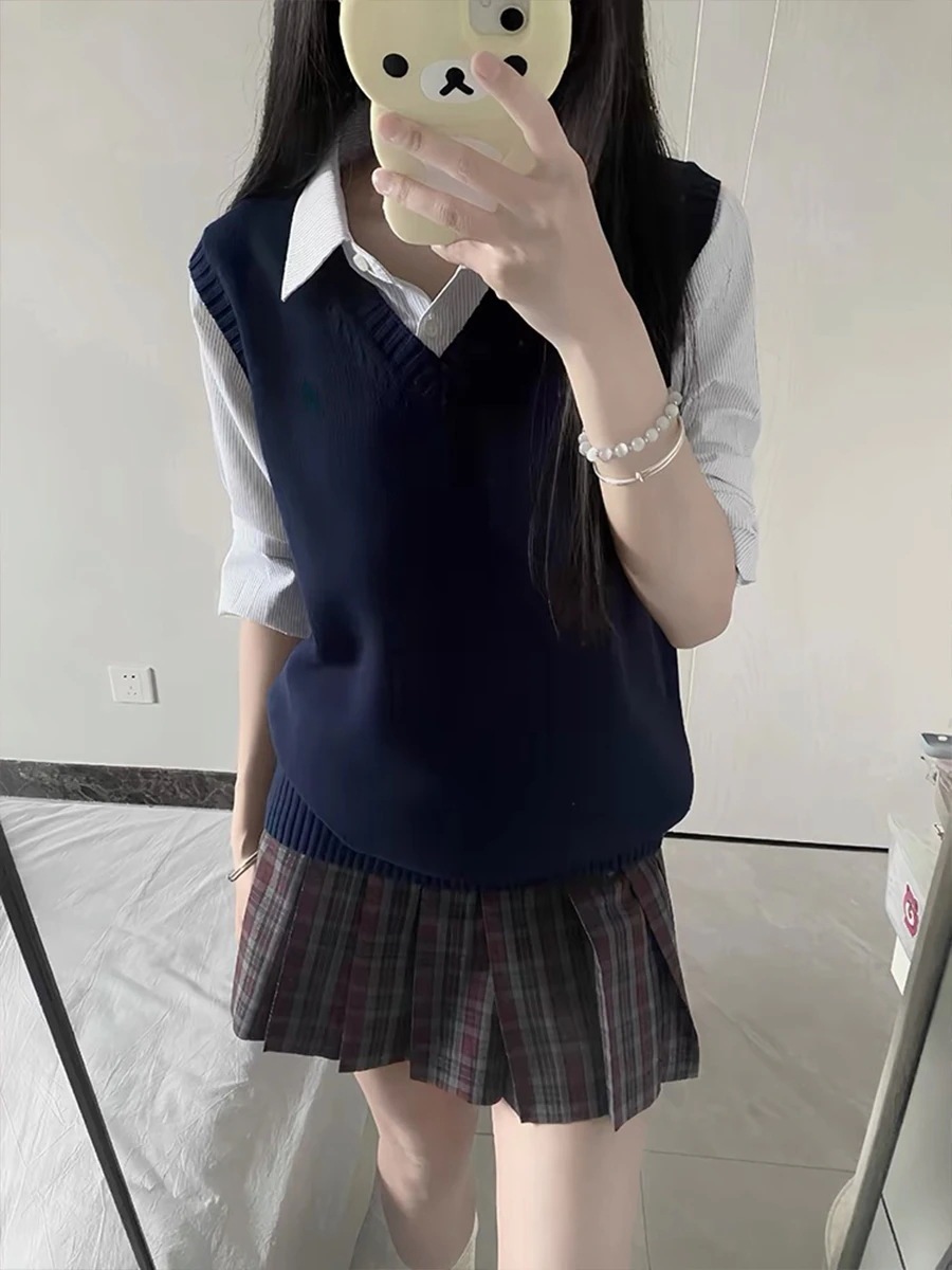ニットベスト ニットセーターベスト春秋重ね着に万能なVネックJK無地ベスト