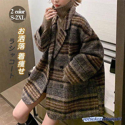[厳選/人気新品]コート/ピーコート/レディース/ルーズシルエットチェック柄ショートコート秋冬/ス/オーバー/アウター/無地/かわいい/ゆったり/体型カバー