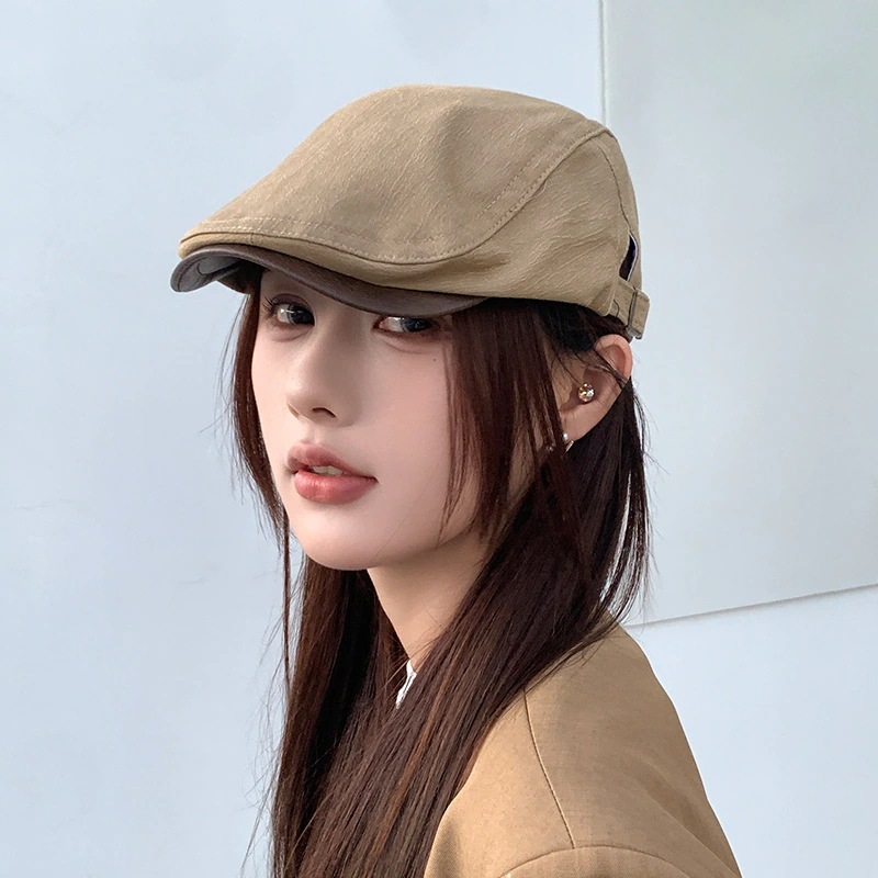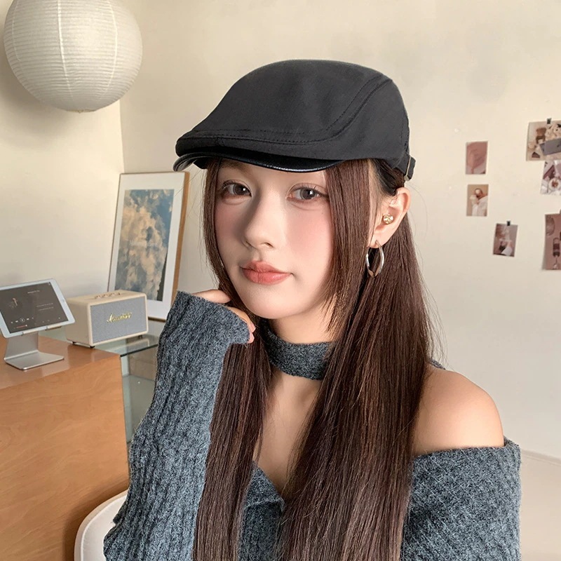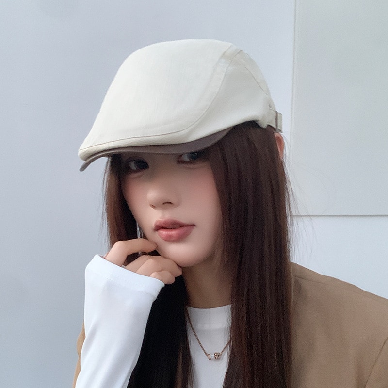 逆さベレー帽 春秋用レトロキャップ ダックビル ボーイッシュな韓国風 顔小見え カラーブロック フロントキャップ