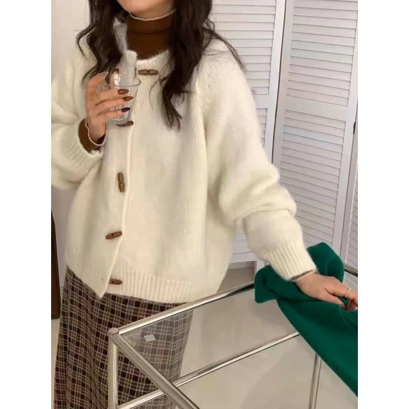 優しい風 ラウンドネック 牛角ボタン ニットカーディガン レディース 2025 秋冬 新作 ゆったり 柔らかくふんわり 合わせやすい セーター アウター
