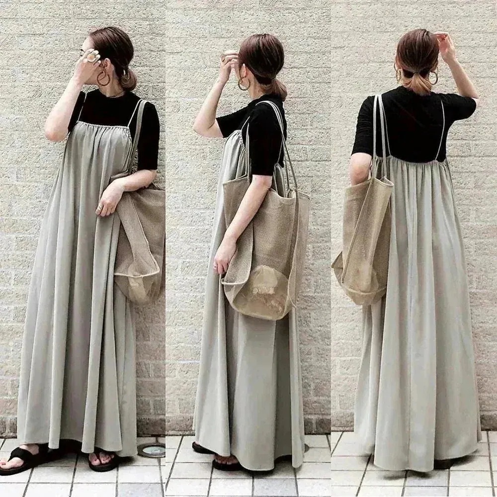 2点で0oワンピース 服 キャミソールワンピース ロング 韓国 レディース 大きいサイズ 気質ジャニーズスタイル セット アップ ひんやりボトムス ヘビロテキャミワンピース