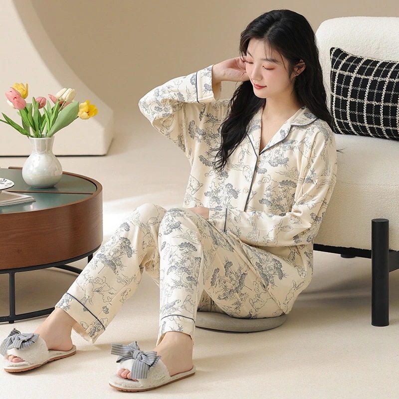パジャマ レディース新作カーディガン長袖長ズボンシンプルカジュアルセットホームウェア