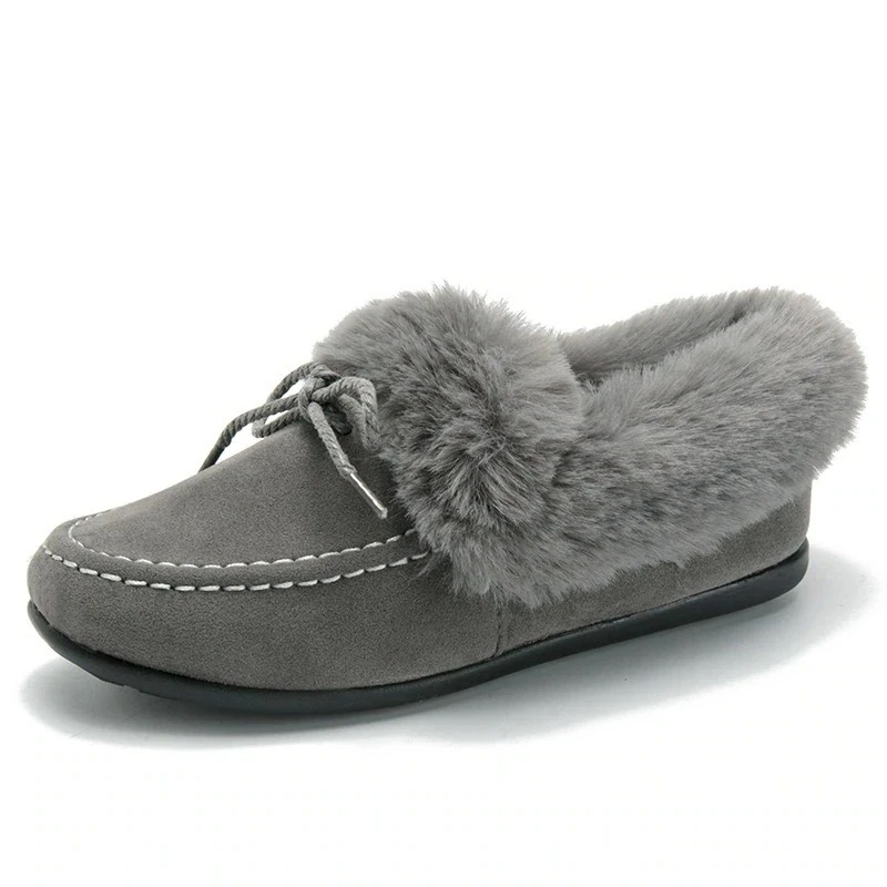 ファーシューズ 靴 モカシン 裏ボア もこもこ フラット ぺたんこ ムートン レディース パンプス1502340