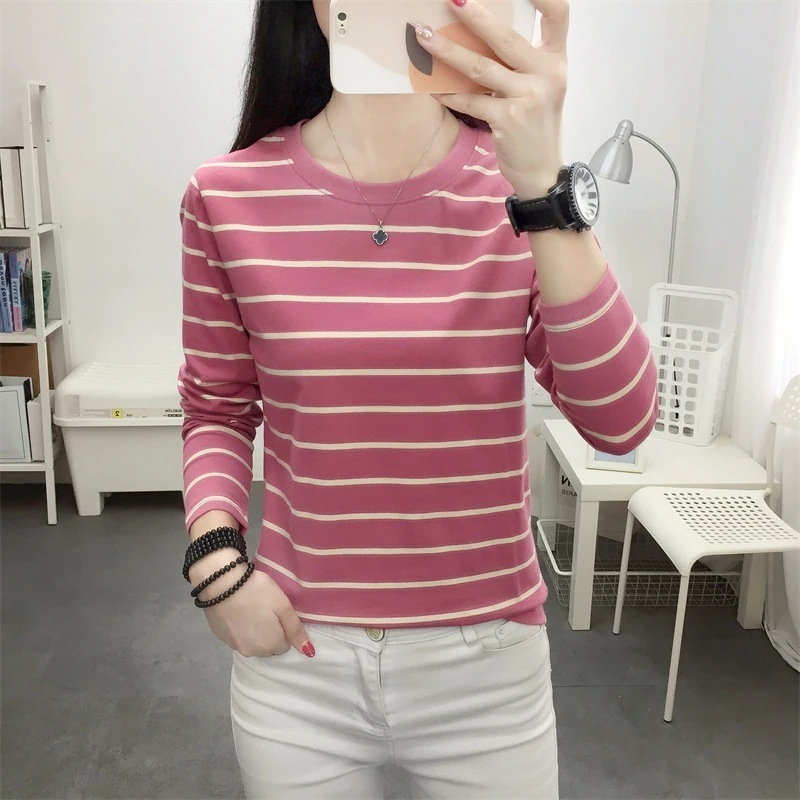 【本日限定】プラスサイズレディースゆったり長袖Tシャツ レディース 秋物純綿ストライプインナートップス tシャツ 長袖