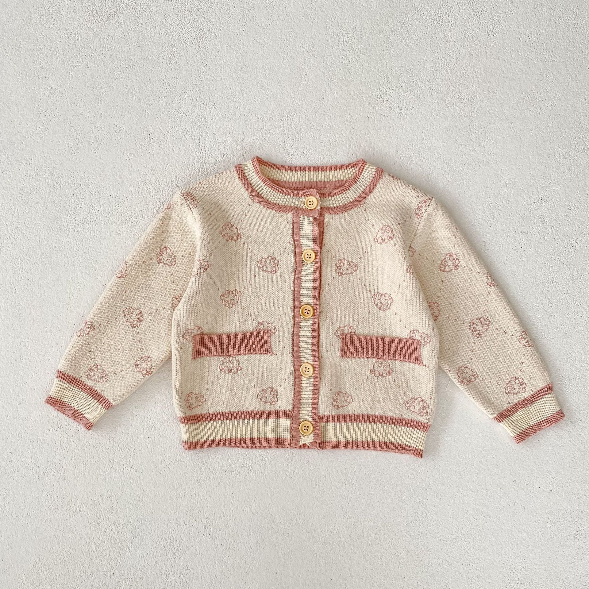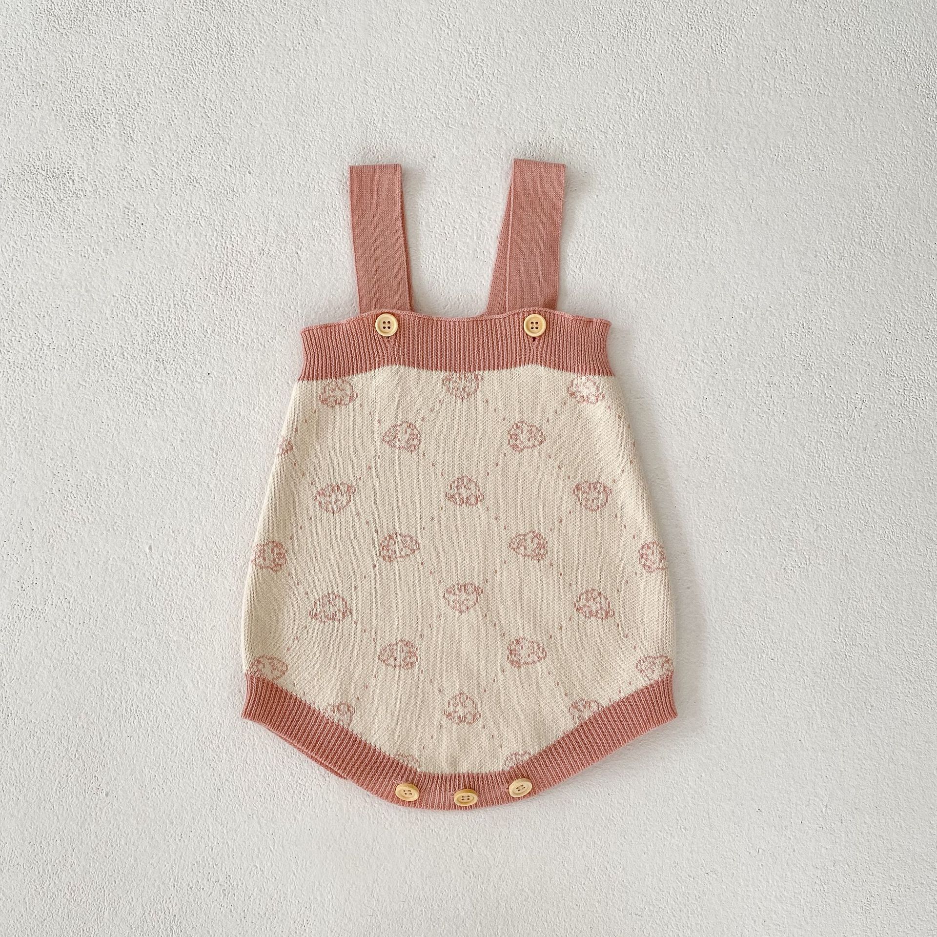 秋物 乳幼児女の子ベビー用 可愛い小熊の頭プリントニットジャケット+サスペンダーワンピース 2 点セット