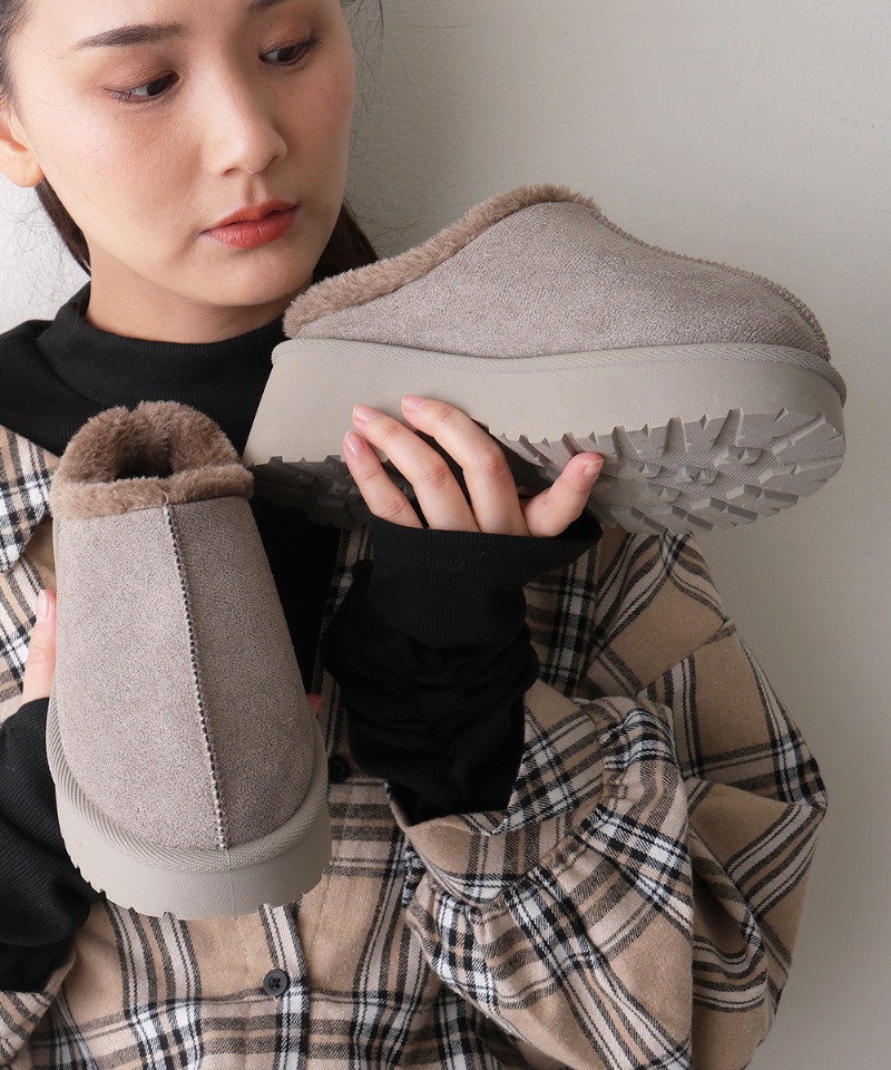 厚底 デザインソール ボリュームファー ムートンシューズ