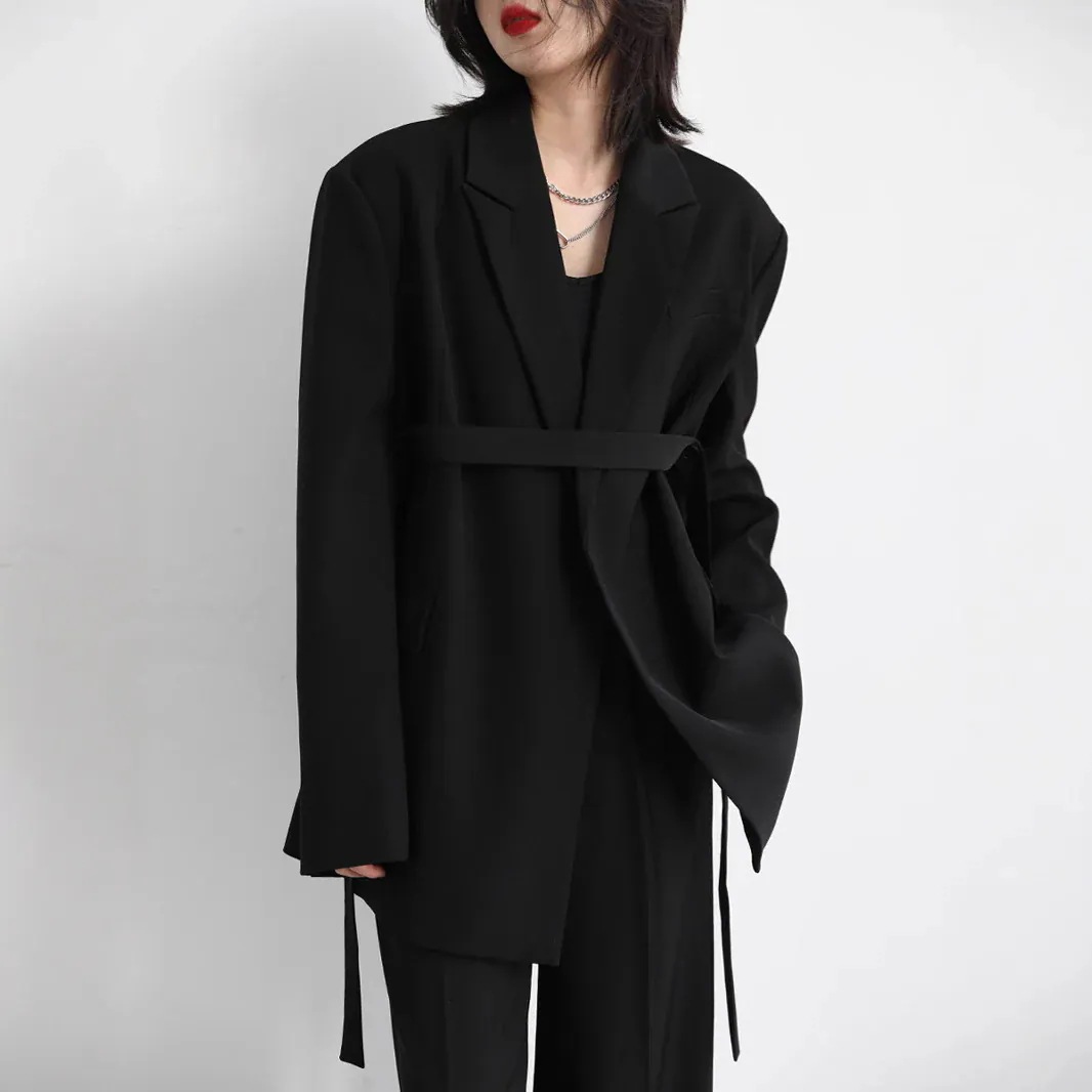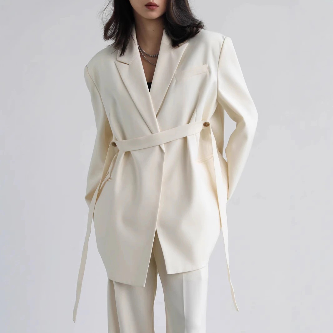 秋 冬 スーツアウター デザイン感 vネック 長袖 セミロング丈 ホワイト/ブラック レディース