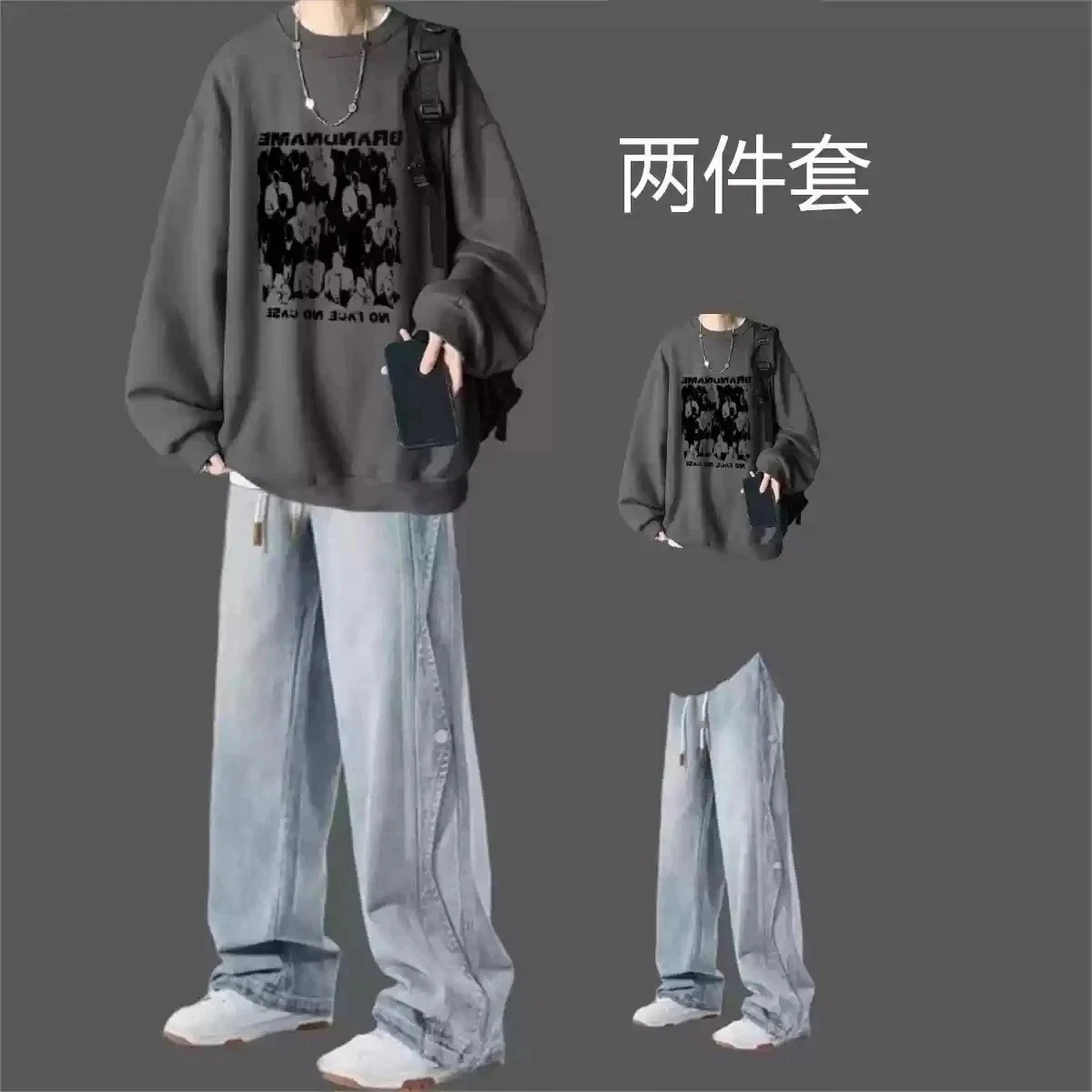ハイストリート【秋冬新作注目】ファッション デザイン ジーンズ セット ボーイズ 秋冬 ルーズ ハイストリート お揃い ティーンエイジャー ツーピース