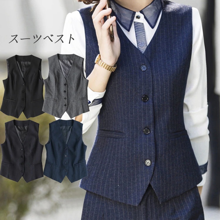 短納期 【店長おすすめ】 事務服 制服 ベスト 洗える 通勤 オフィス 企業 ユニフォーム 大きいサイズ 前開き ol ネイビー 黒 ストライプ レディース フォーマル 無地新商品プロモーション