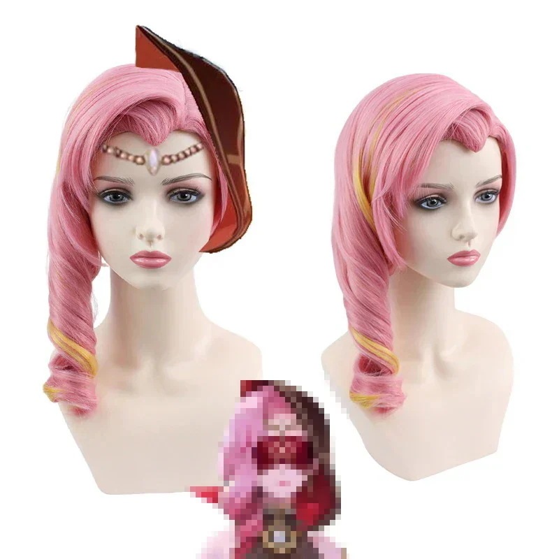 短納期 【店長おすすめ】 品原神金メッキ旅団ブレイジングサンドナレーターピンクと黄色のグラデーションウィッグ右ショートカーリーウィッグ かつら新商品プロモーション