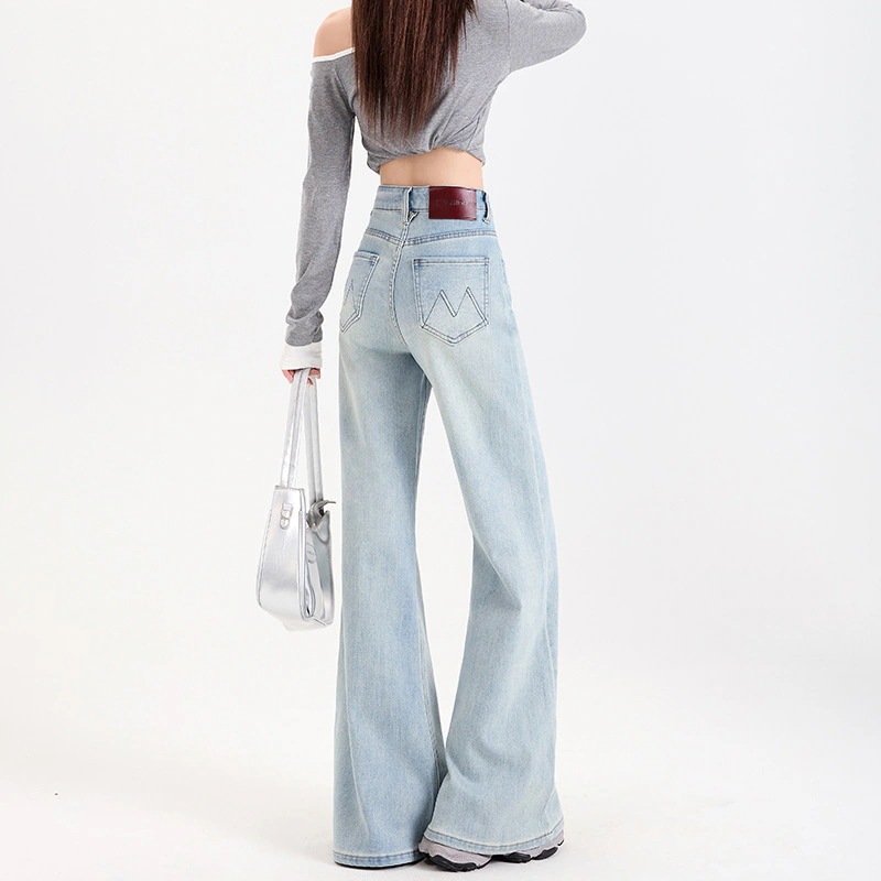 ハイウエストストレッチ微フレアデニムパンツ女性用2025新作スリムフィットで脚に張り付かず脚長効果のあるマキシ丈ホースシューパンツ