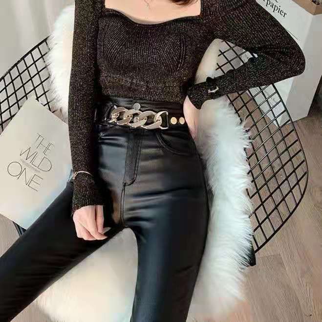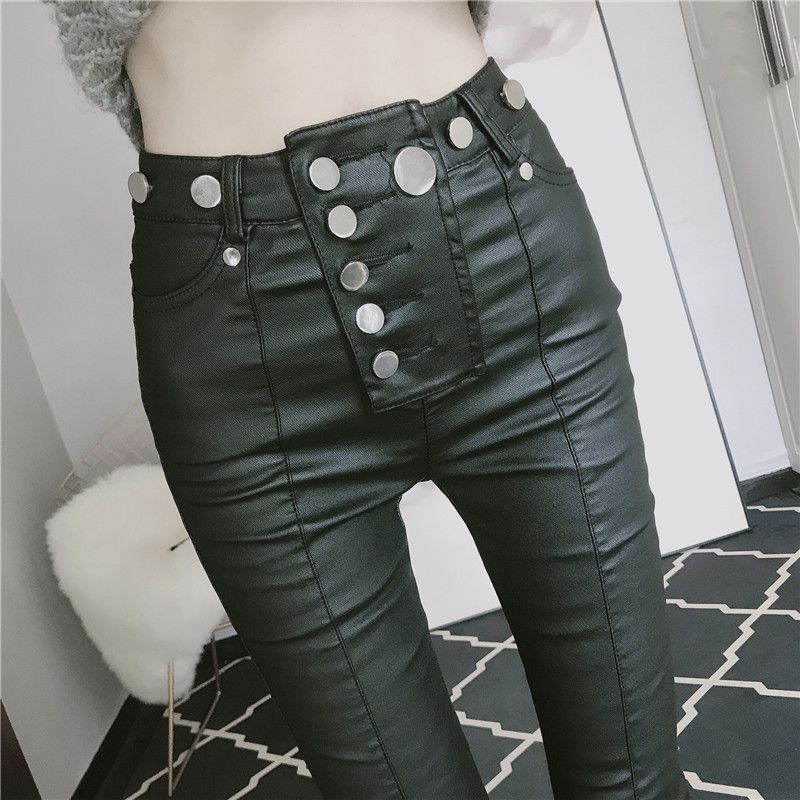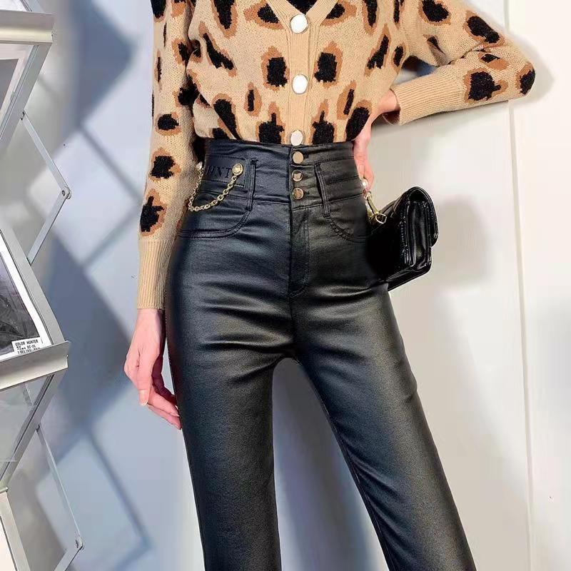 25ウエスタンスタイルスリム小脚レザーパンツファッションジッパータイトハイウエストペンシルパンツ婦人服