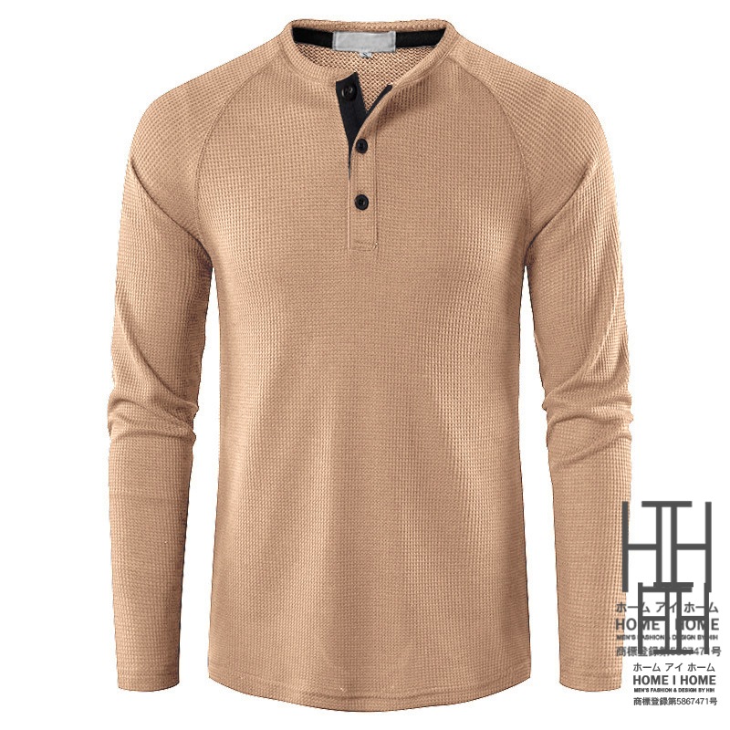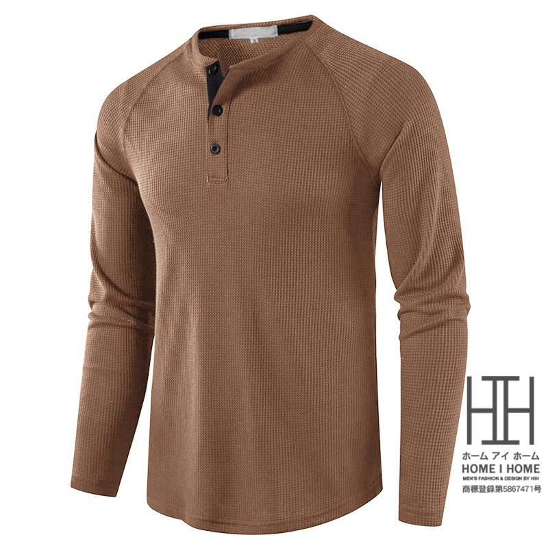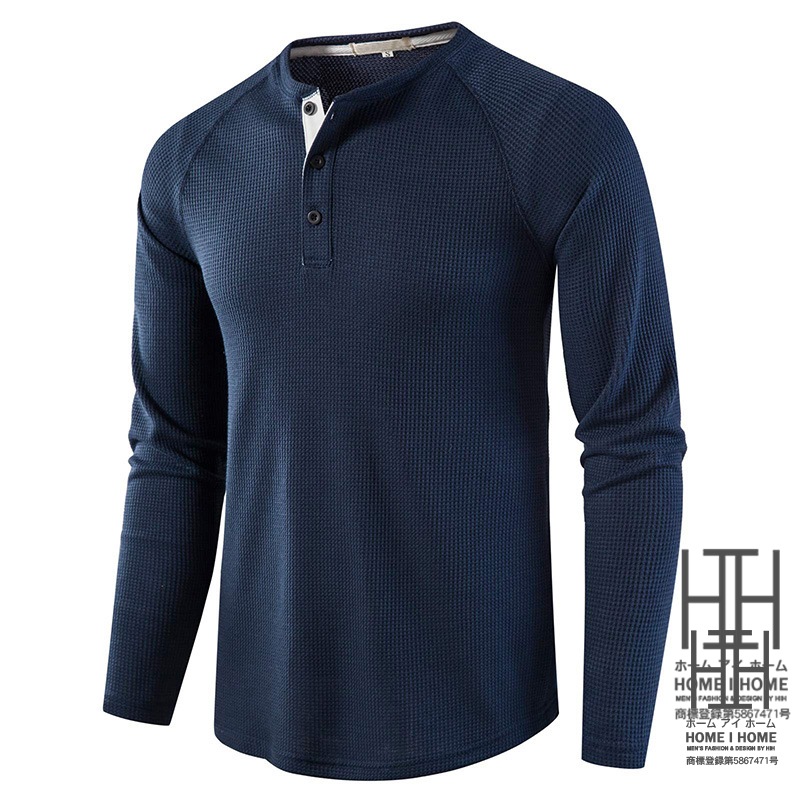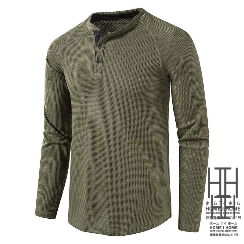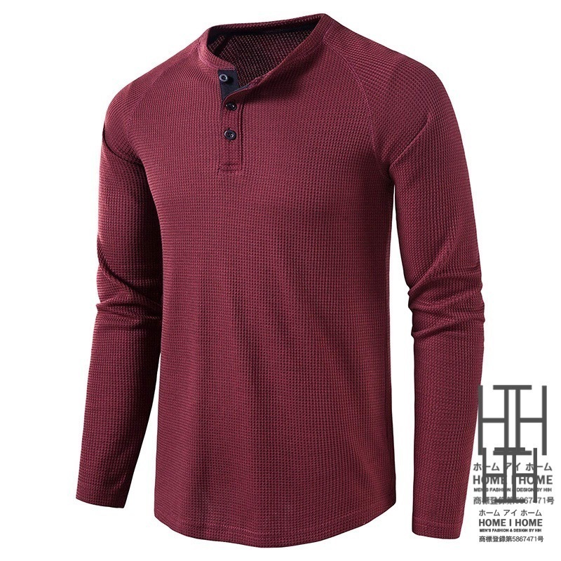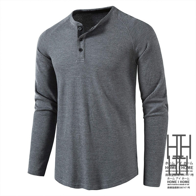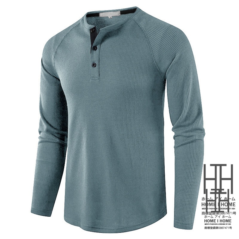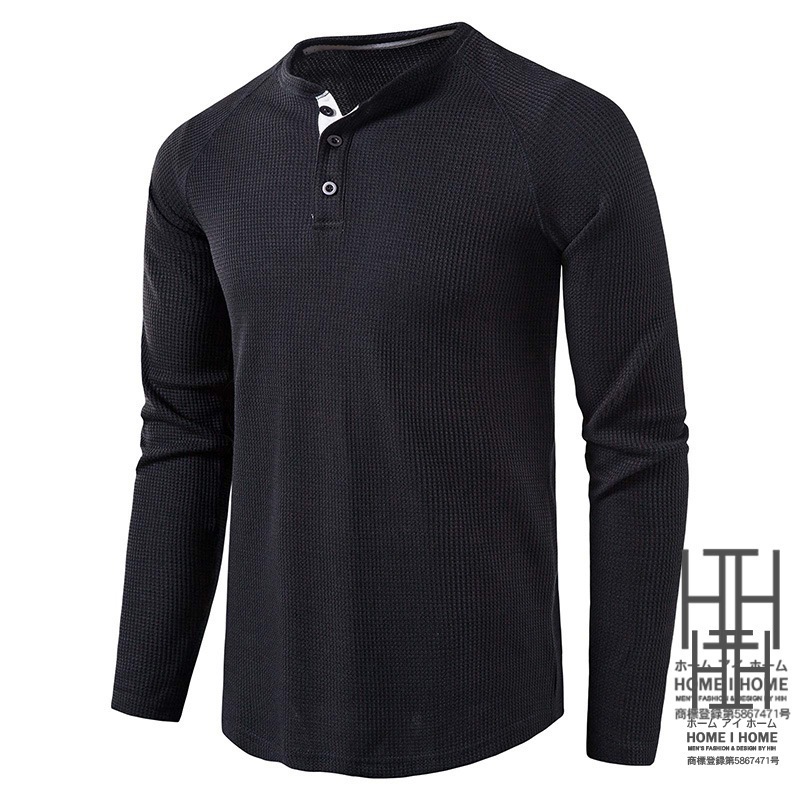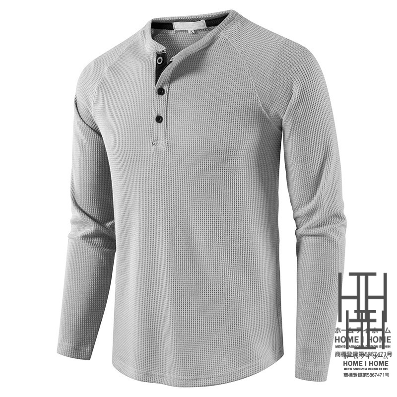 【急速出荷】ヘンリーネックtシャツ メンズ 長袖 無地 ワッフル 白 グレー 黒 秋 冬 長袖tシャツ ヘンリーネック ロングtシャツ ロンt トップス カットソー お洒落 定番