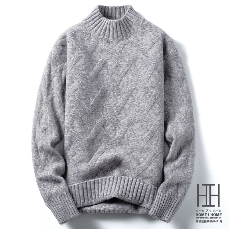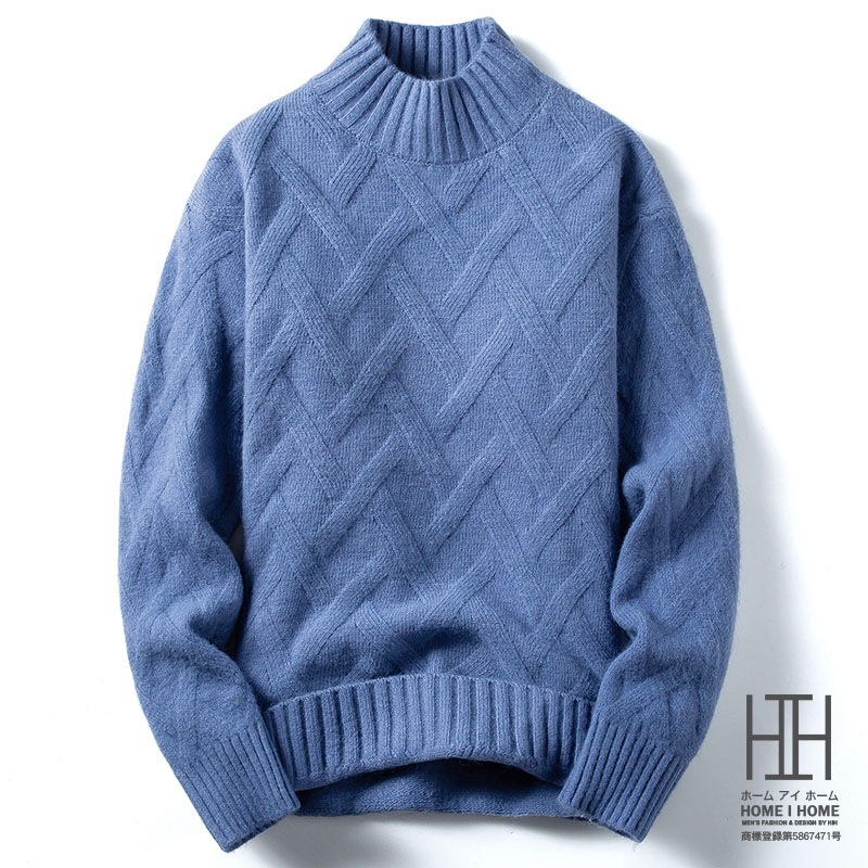 【急速出荷】ニットセーター モックネック メンズ 柄物 ハイネック スタンドカラー リブニット おしゃれ スタイリッシュ カジュアル 柔らか ソフト 保温 防寒 トップス
