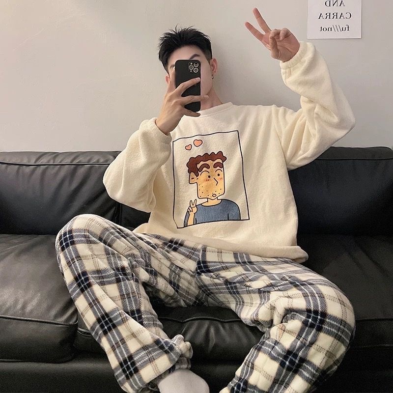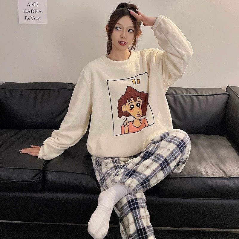 冬の珊瑚絨毯カップルクレヨンしんちゃんパジャマ女性厚手加絨毯フランネル男性外出可能部屋着2枚セット誕生日プレゼントカップル学生