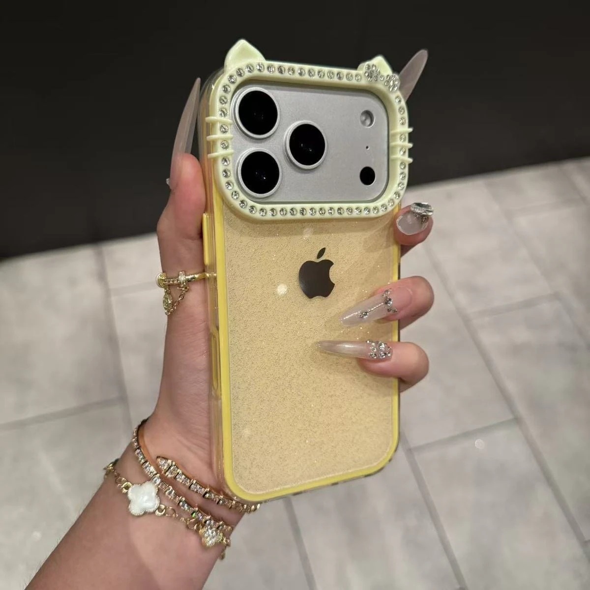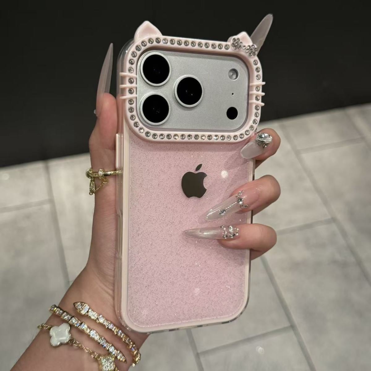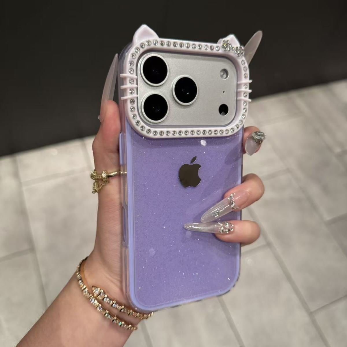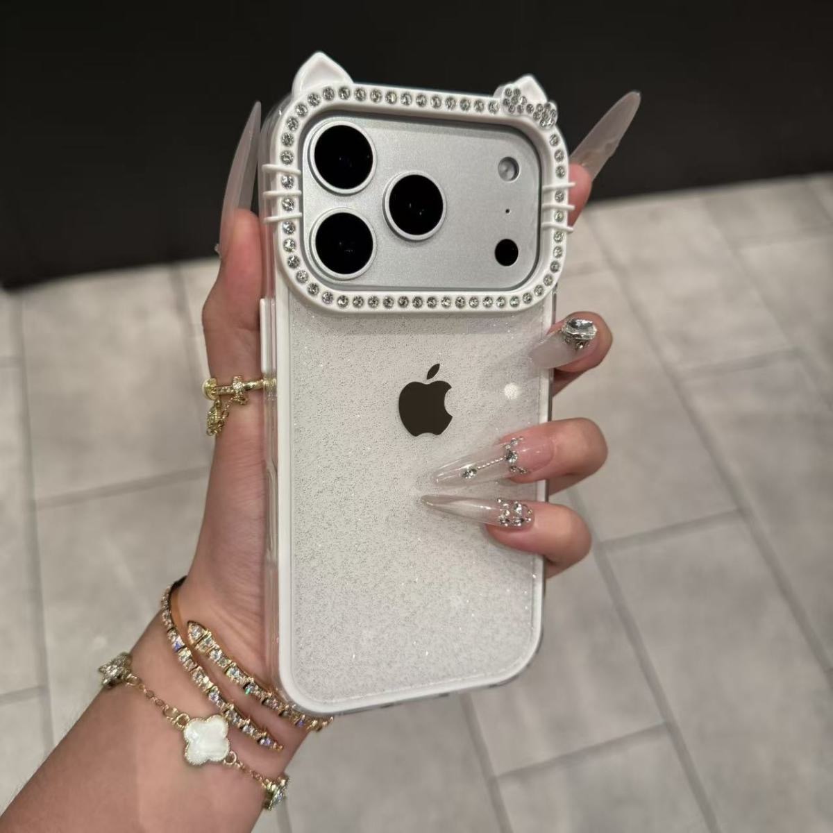 シンプルキティ猫耳フォトフレーム携帯ケースアップル17 Promax携帯ケースiPhone 16/15保護カバー13女14ドリル誕生日プレゼントカップル学生の親友