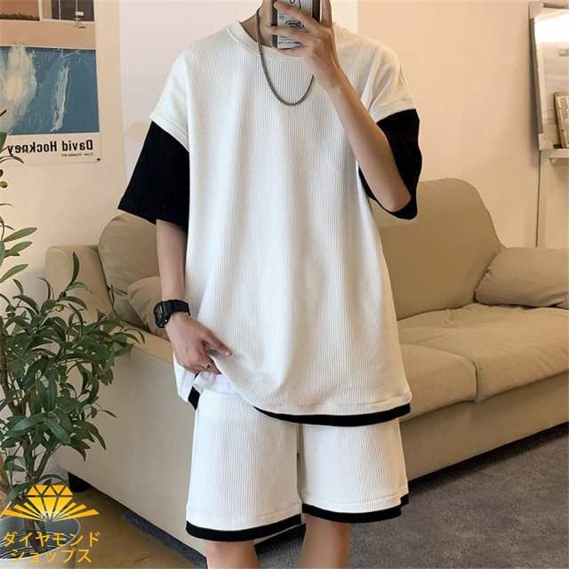 セットアップ メンズ 上下セット 夏 ゆったり tシャツ ハーフパンツ 半袖 カジュアル 涼しい シンプル 薄手 夏新作 接触冷感