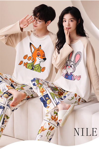 ズートピア ペアパジャマ レディース ルームウェア ペアルック カップル パジャマ レデイース メンズ 寝巻き 男女セット ナイトウェア お揃い 部屋着 外出できるパジャマ 春秋冬 可愛い プレゼント