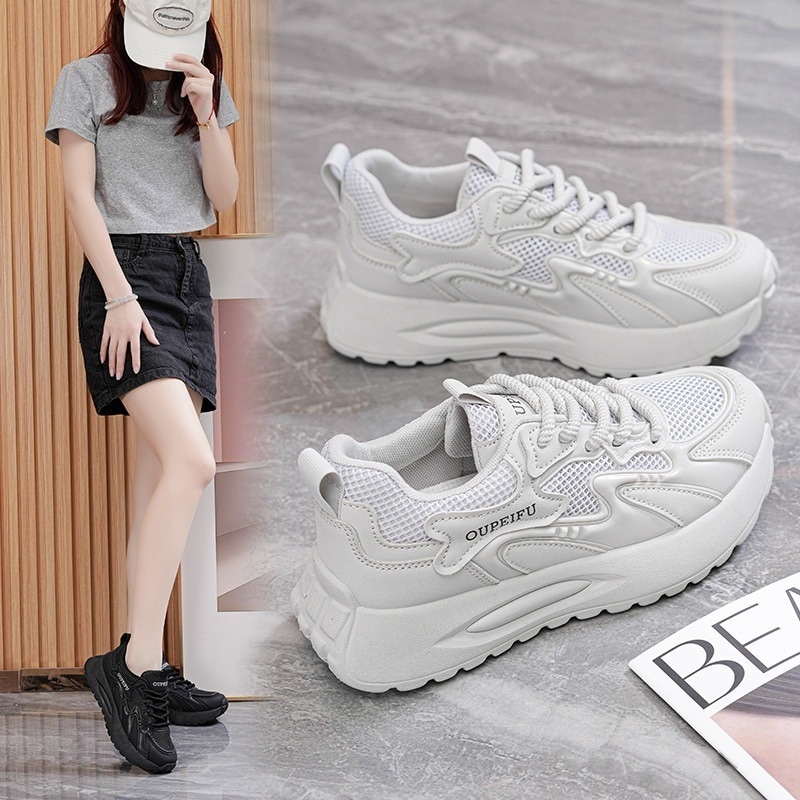 【秋の新作】秋女性靴 2025新作 通気性 ネット面 運働靴 韓国版百は厚い底 レジャー 軟底を走って親父さん靴 レディース靴 カジュアル靴 スニーカーレディース