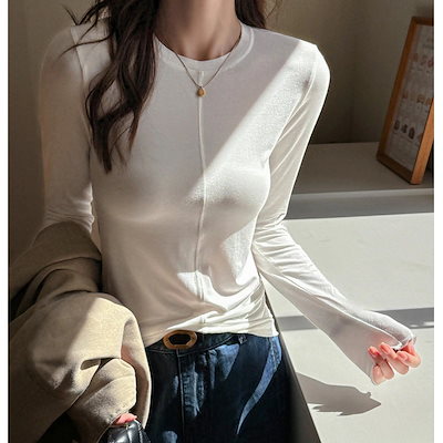 【急速出荷】早秋ラウンドネックデザインベースレイヤー レディース インナー秋冬高級感シンプル長袖Tシャツトップス Tシャツ 長袖