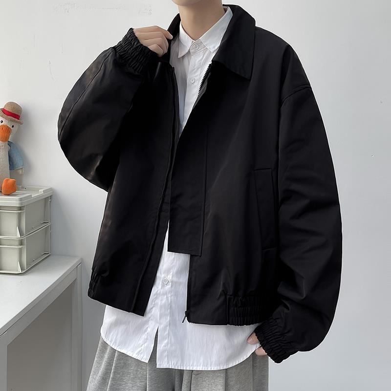 【秋冬新作注目】春アウター ショート丈のワークジャケットカジュアルでハンサムな開襟パーカー メンズ 韓国ファッション