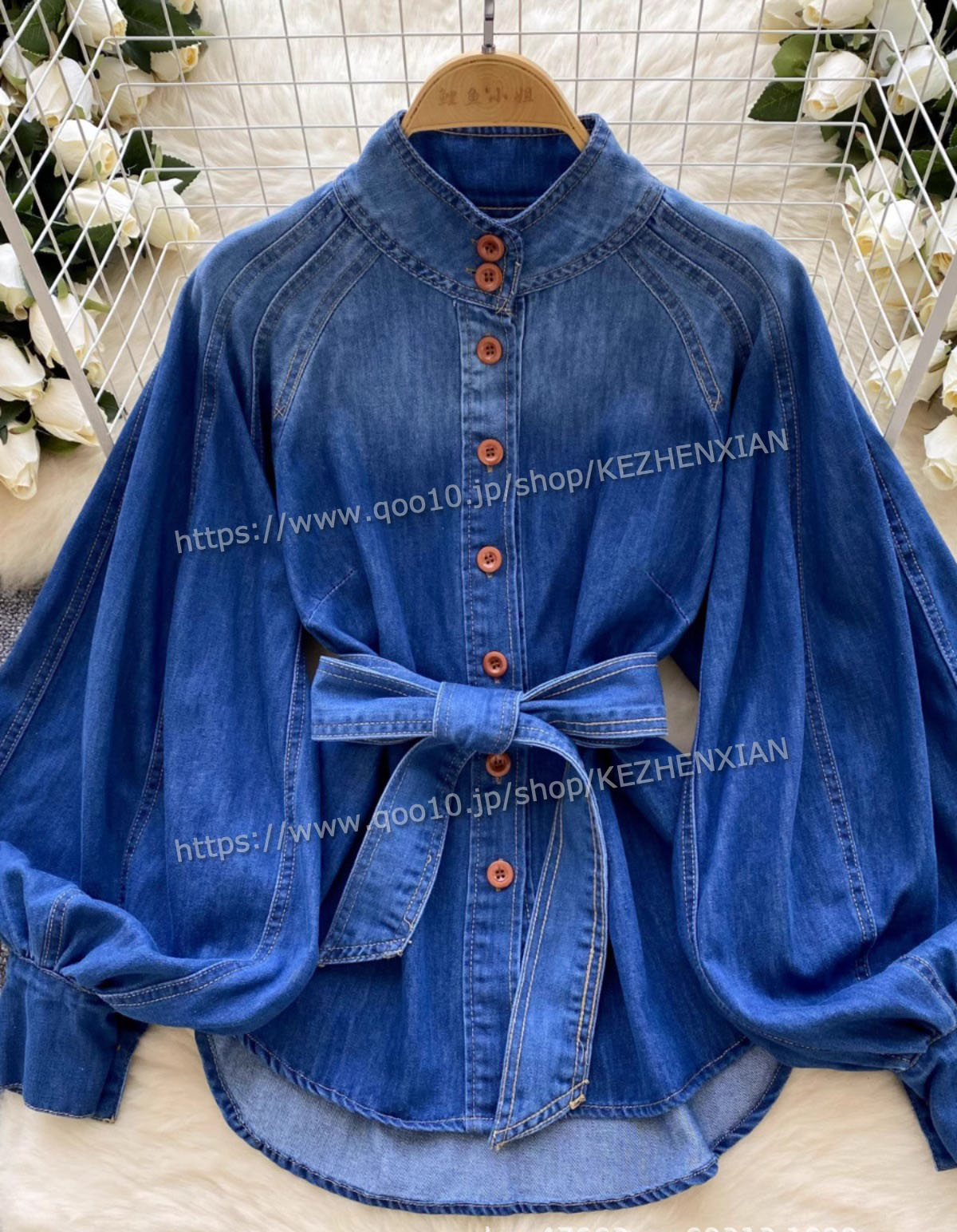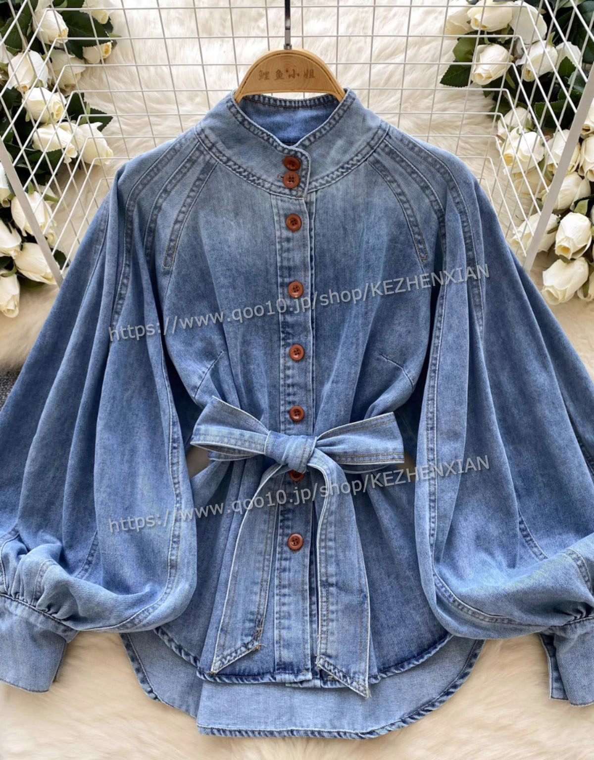 かわいい デニムシャツバルーンスリーブ デニムジャケット デニムコート プルオーバー トレーナー スウェット 韓国 ファッション ゆったり レディーストップスカジュアルシルエット