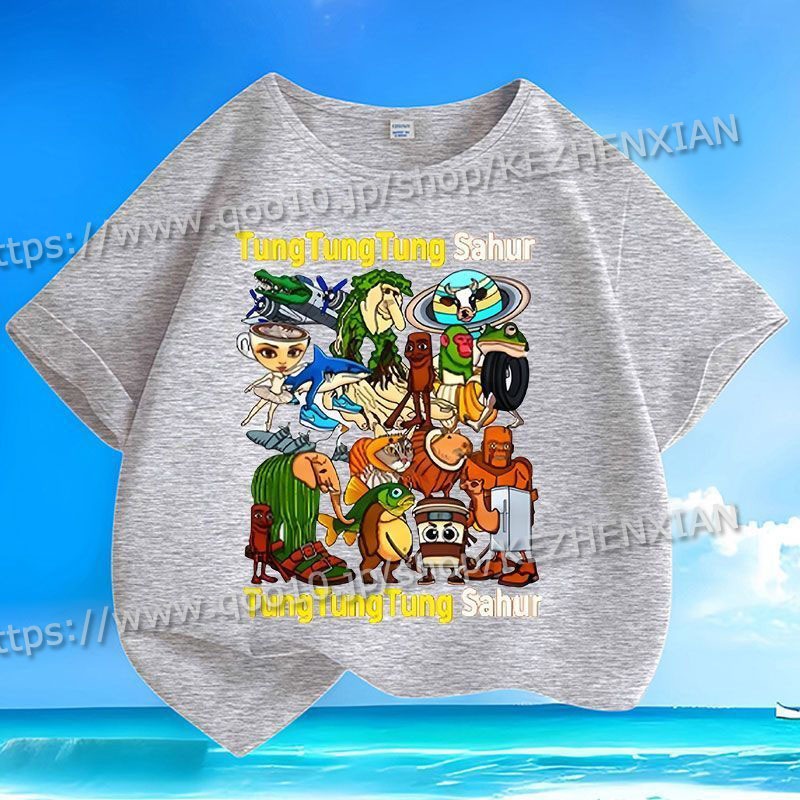 トゥントゥントゥンサフールTシャツ tungtungsahurトララレロトラララ タタタタサフール イタリアンブレインロット 子供服 半袖Tシャツ キッズ 半袖 トップス 子ども服 小学生 通学 通園