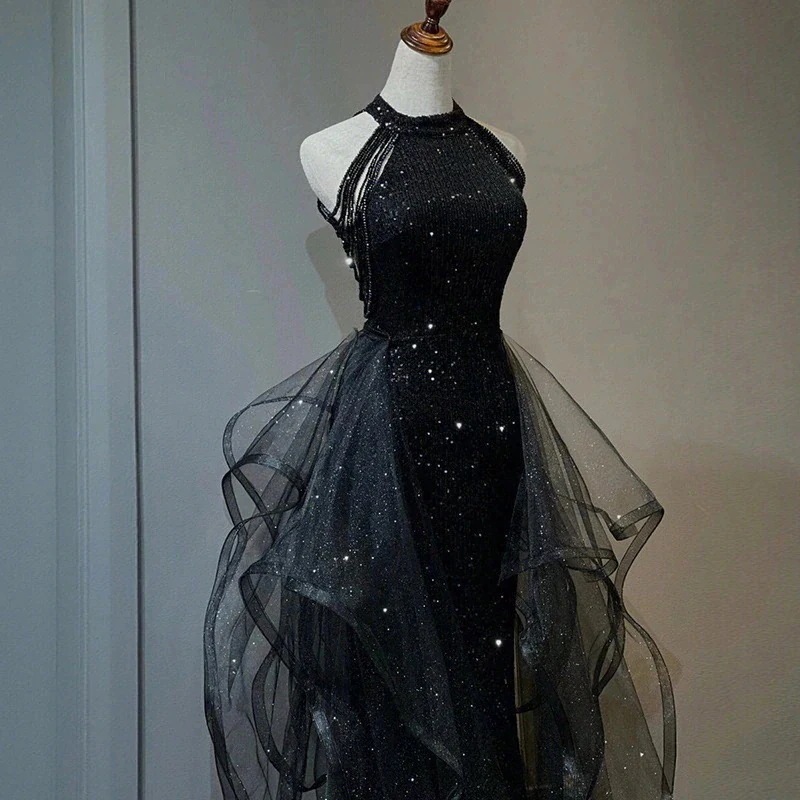 黒のイブニングドレスホルターネックドレス気質スパンコール声楽テストガール のプレゼント